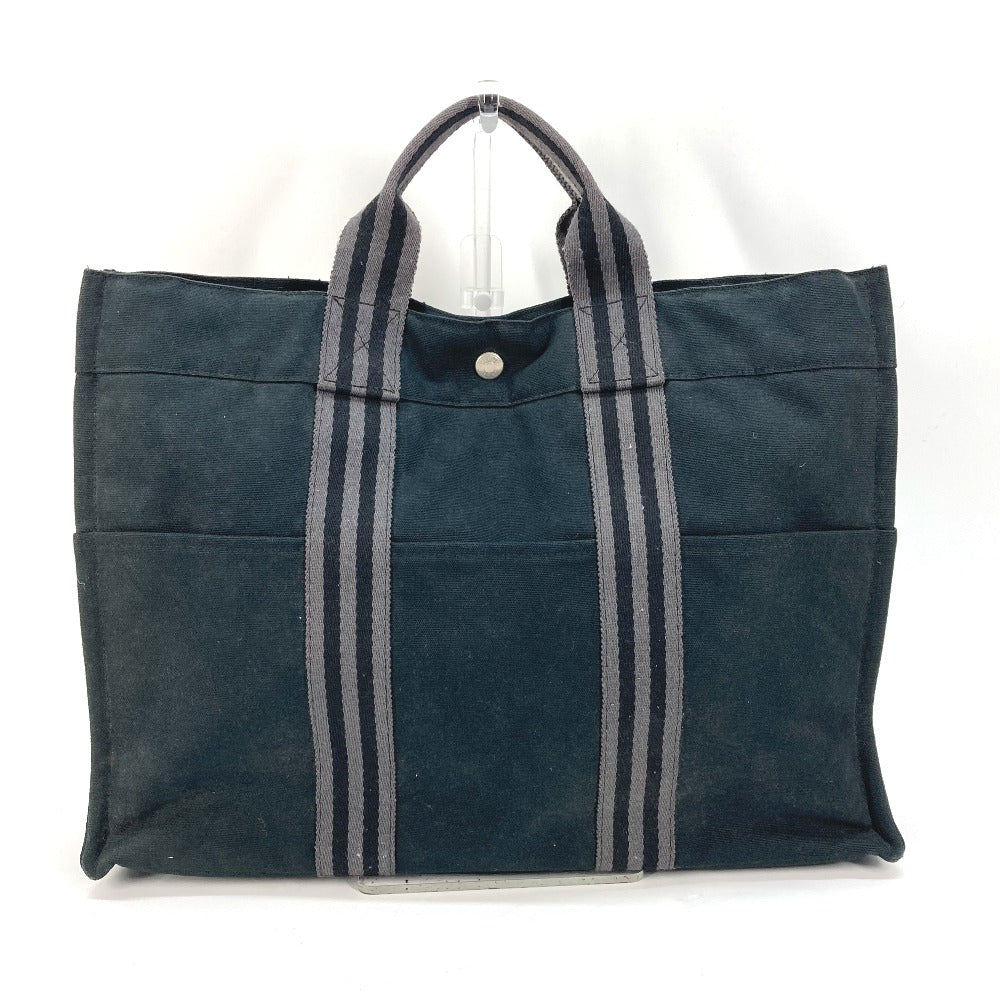HERMES Tote Bag canvas black Fool Toe MM Women Used Authentic