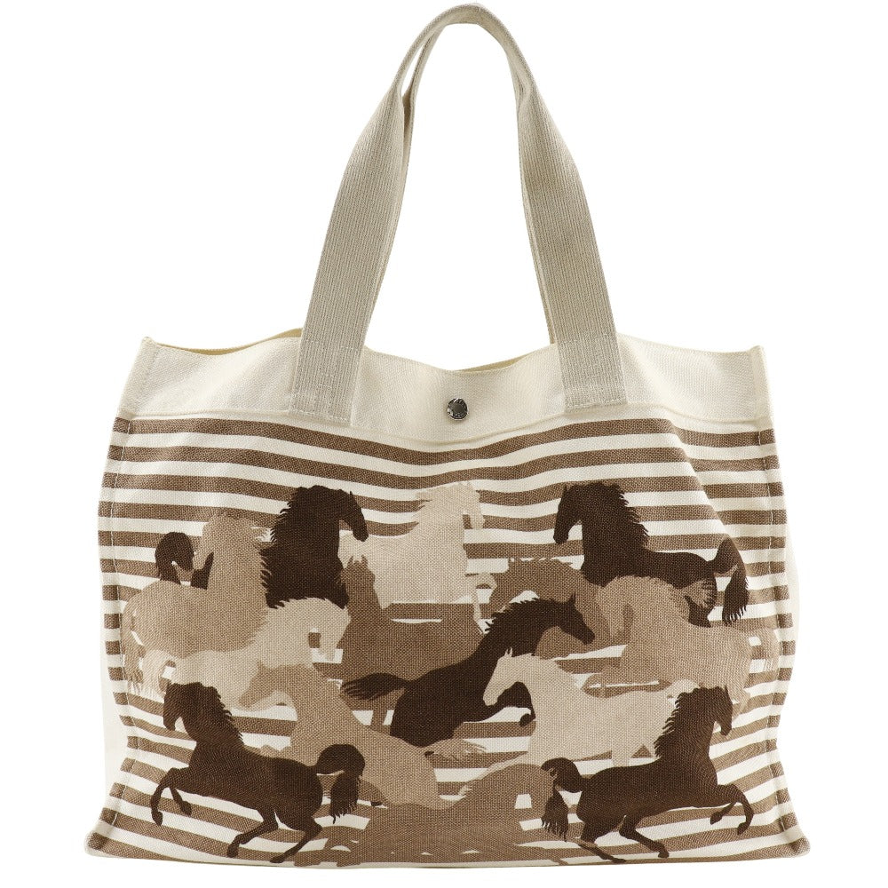 HERMES Tote Bag canvas Brown/Off White Chevault Women(Unisex) Used Authentic