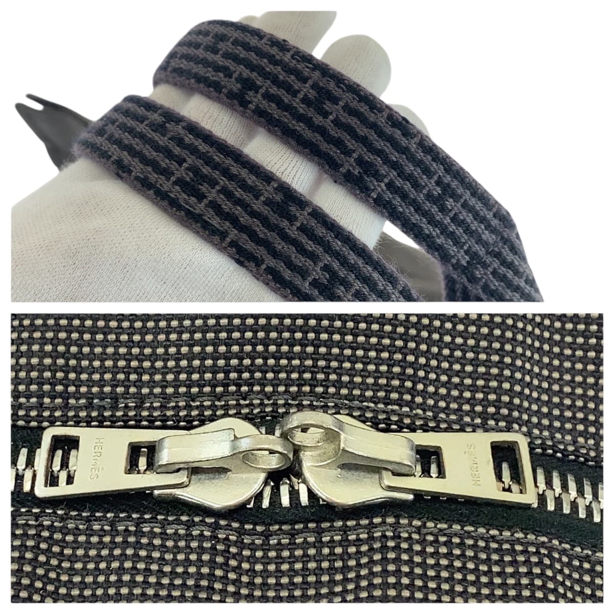 HERMES Tote Bag canvas gray Her LineMM