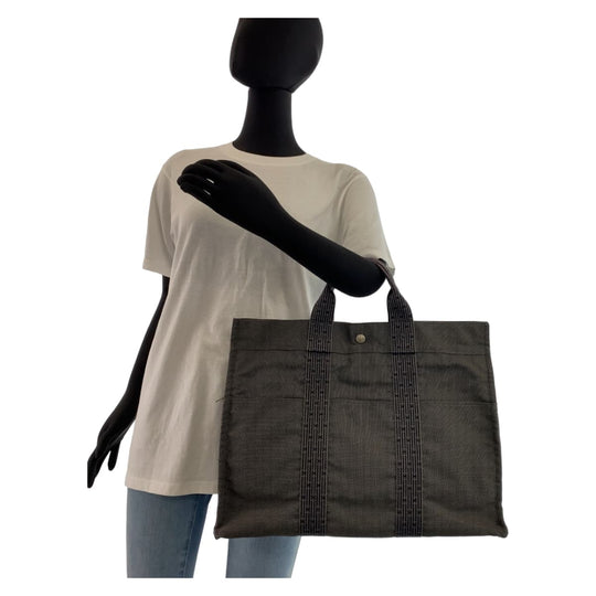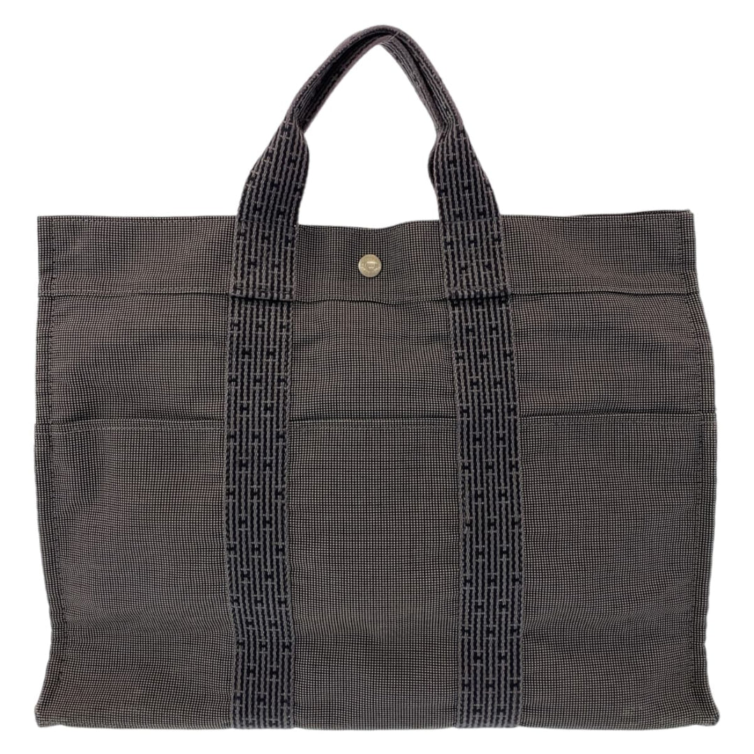 HERMES Tote Bag canvas Grey SilverMetal Tote Bag Handbag A4 storage Unisex Her LineTote MM mens Used Authentic