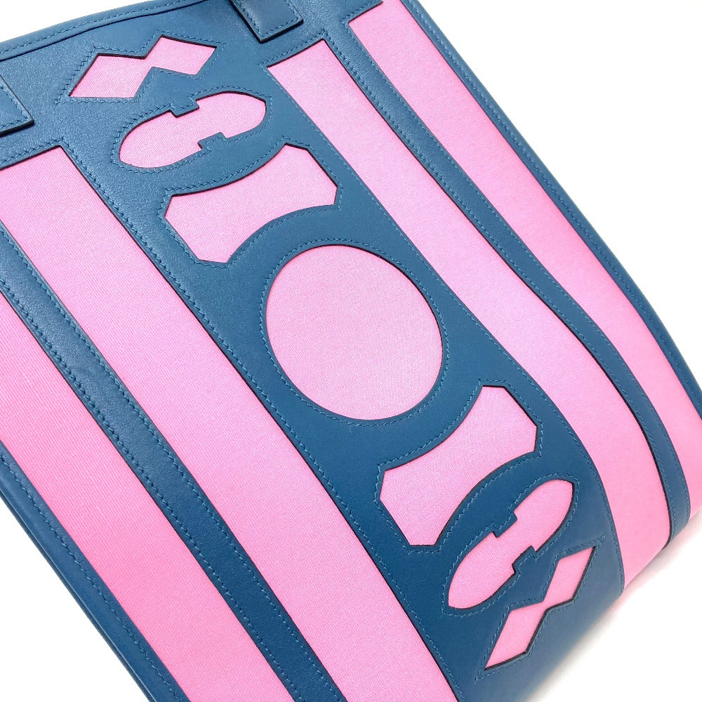 HERMES Tote Bag Leather / canvas Navy x pink Petit Ash dream Catcher Women Used Authentic