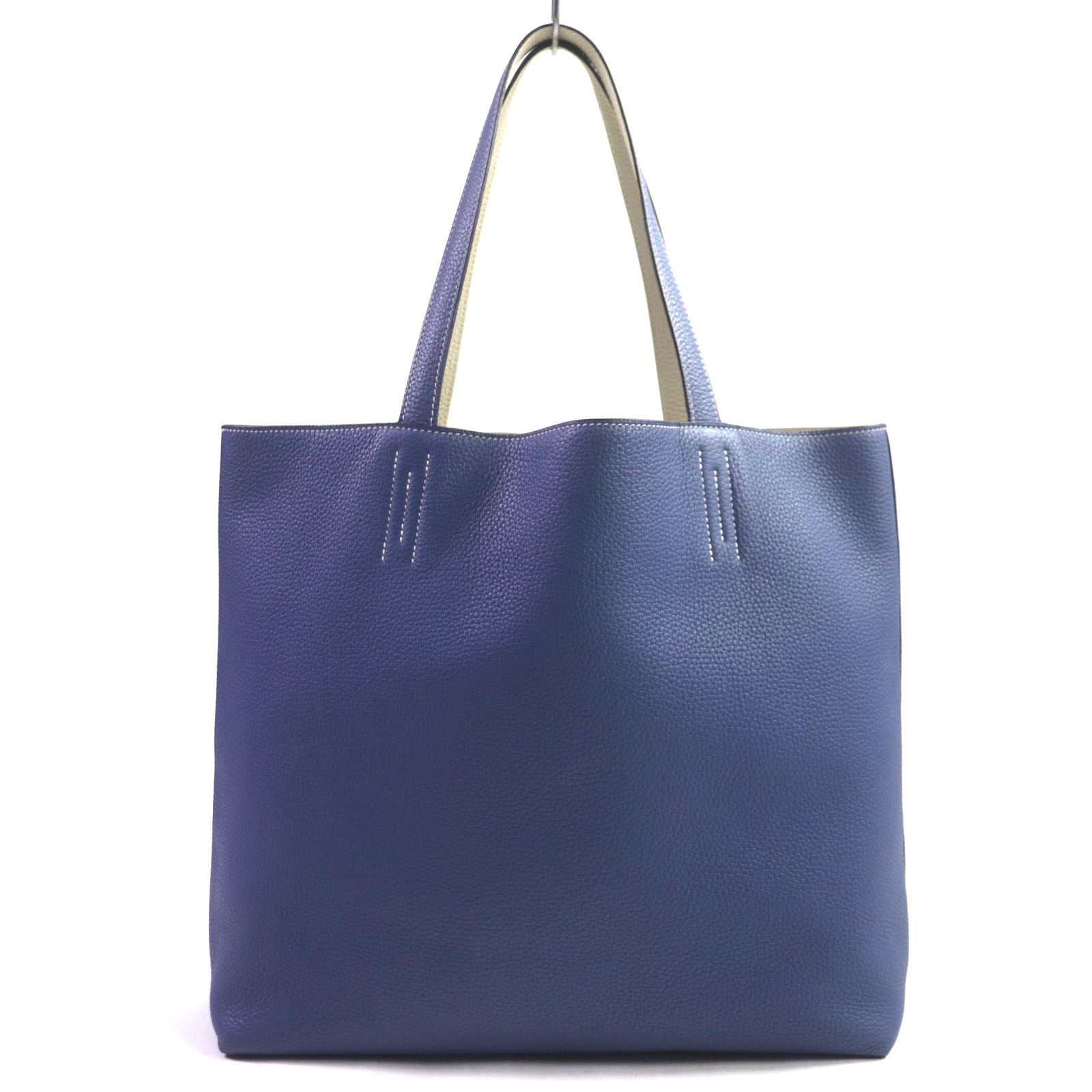 HERMES Tote Bag Taurillon Clemence Leather Blue Brighton Beton Doble Sense 45 mens Used Authentic