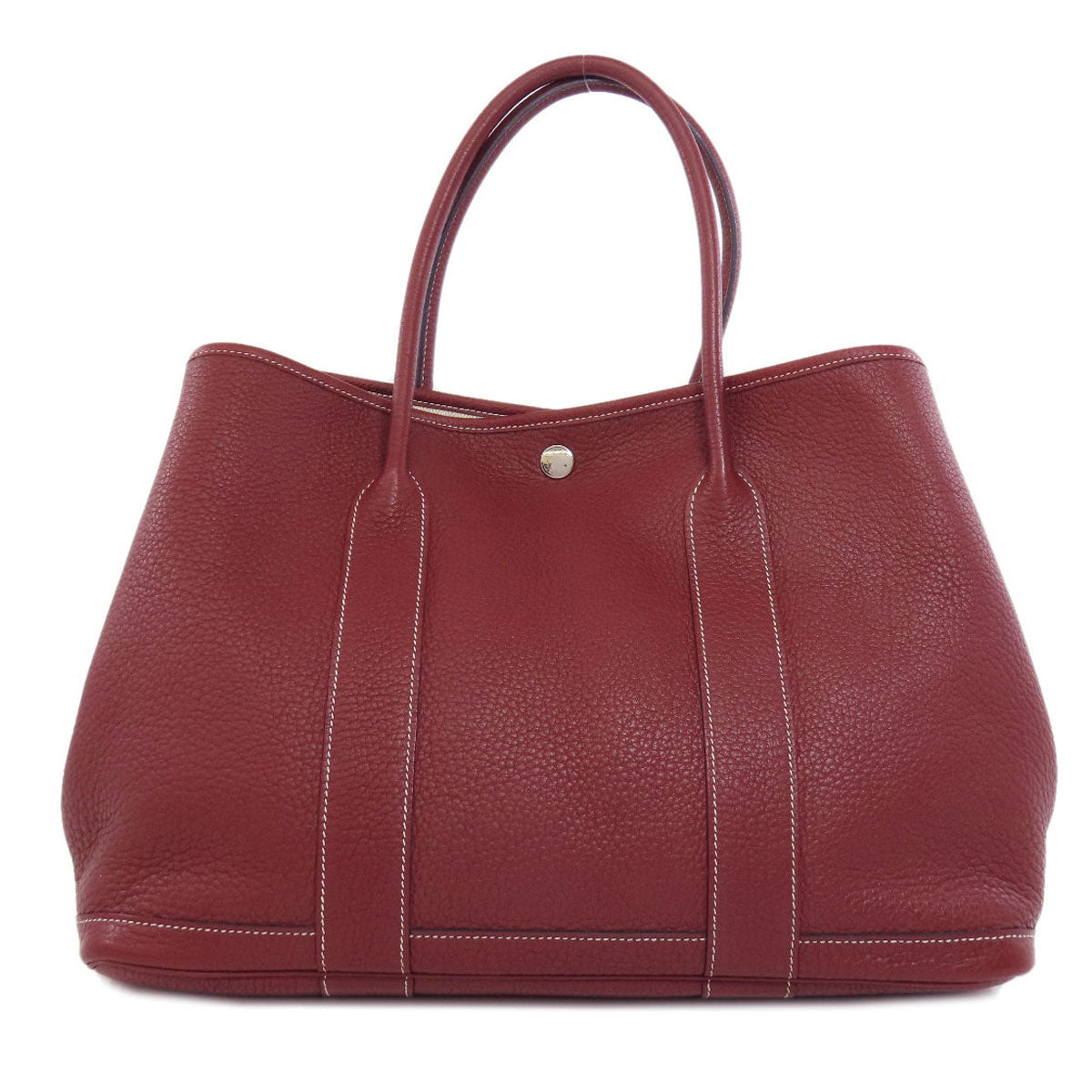 HERMES Tote Bag Taurillon Clemence Red Garden Party PM SilverMetal Women Used Authentic