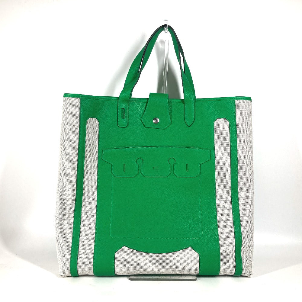 HERMES Tote Bag Toile H, Leather green Shoulder Bag Vertical Petite Hun Monsieur B unisex(Unisex) Used Authentic