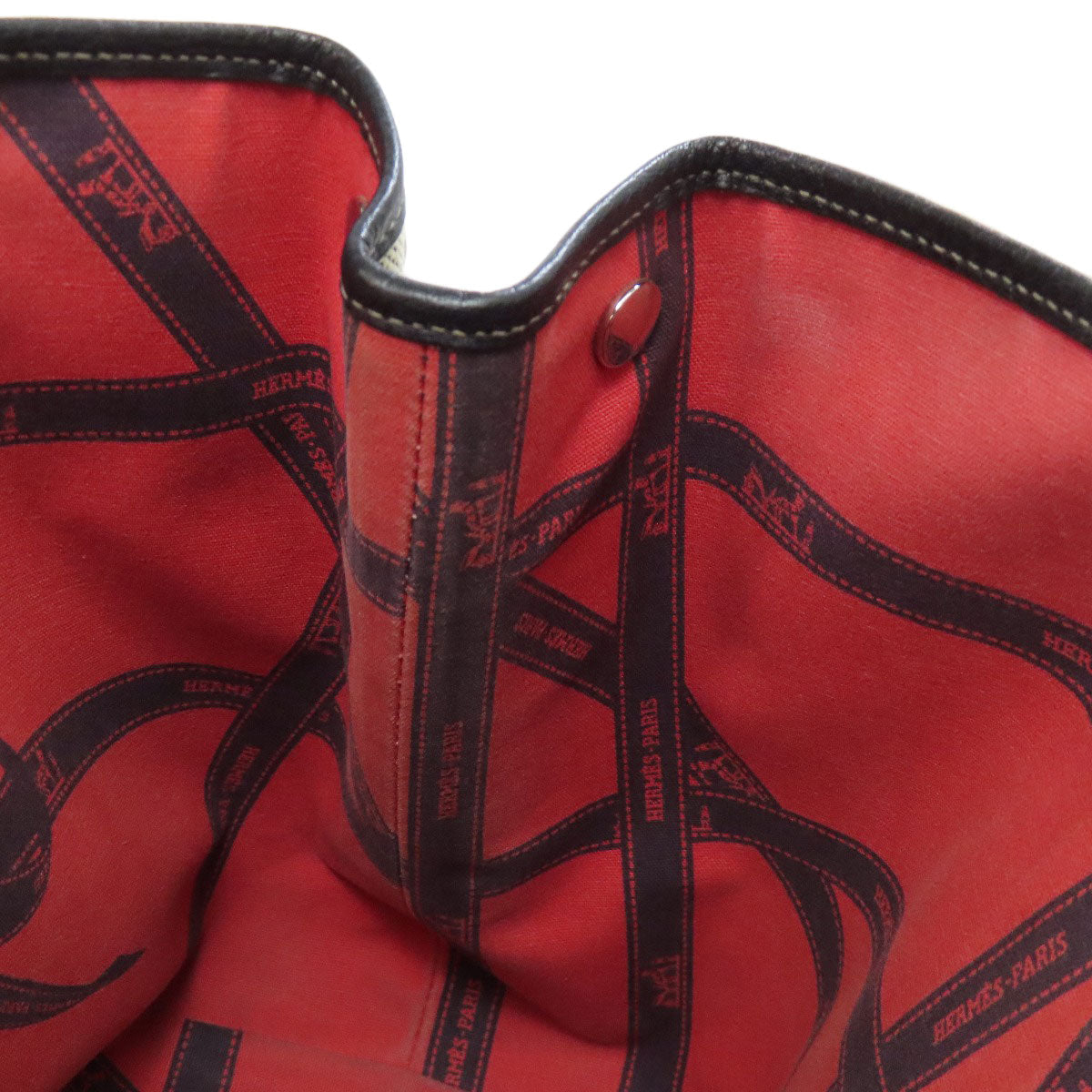 HERMES Tote Bag Towar gray Garden Party PM Bordeaux Ribbon SilverMetal Women Used Authentic
