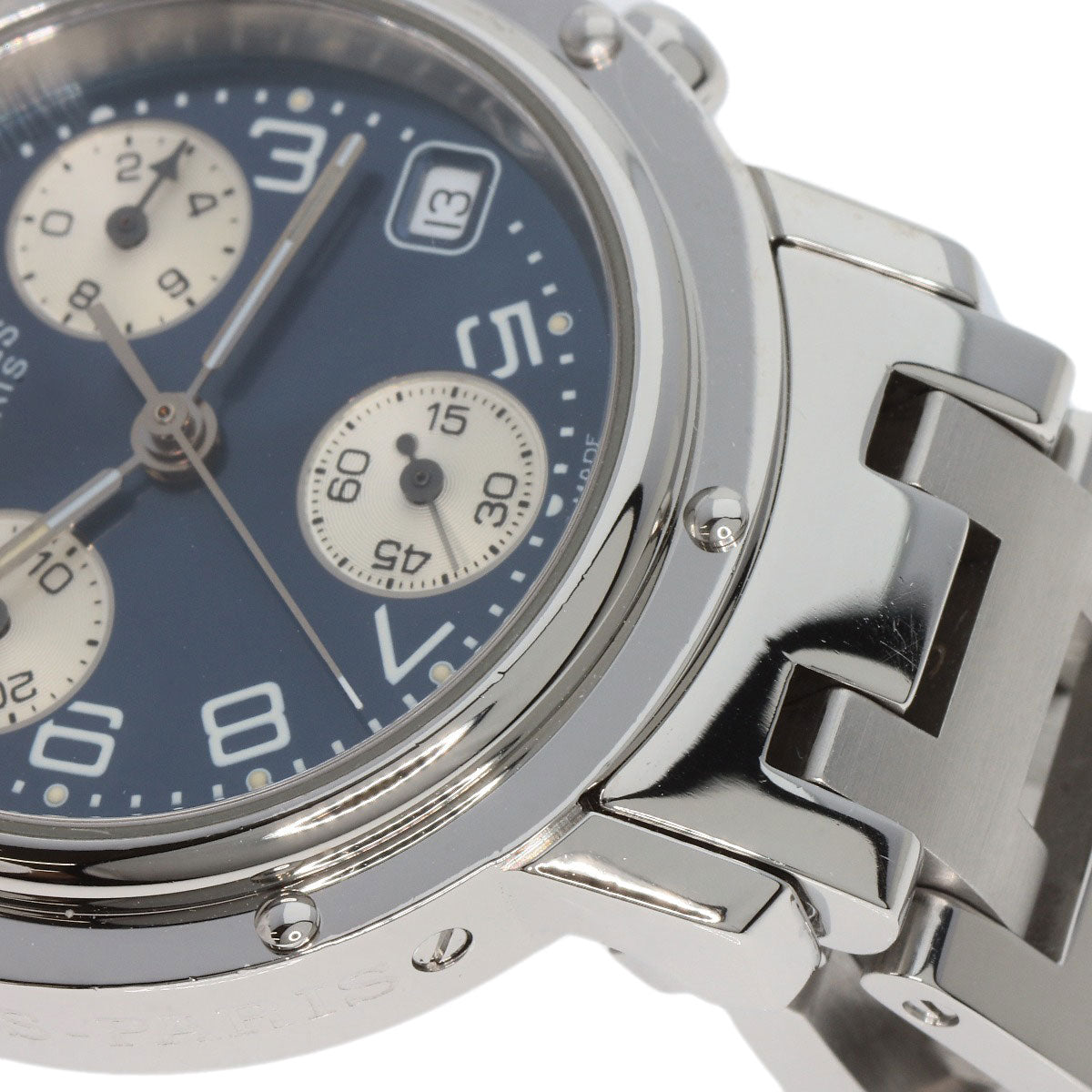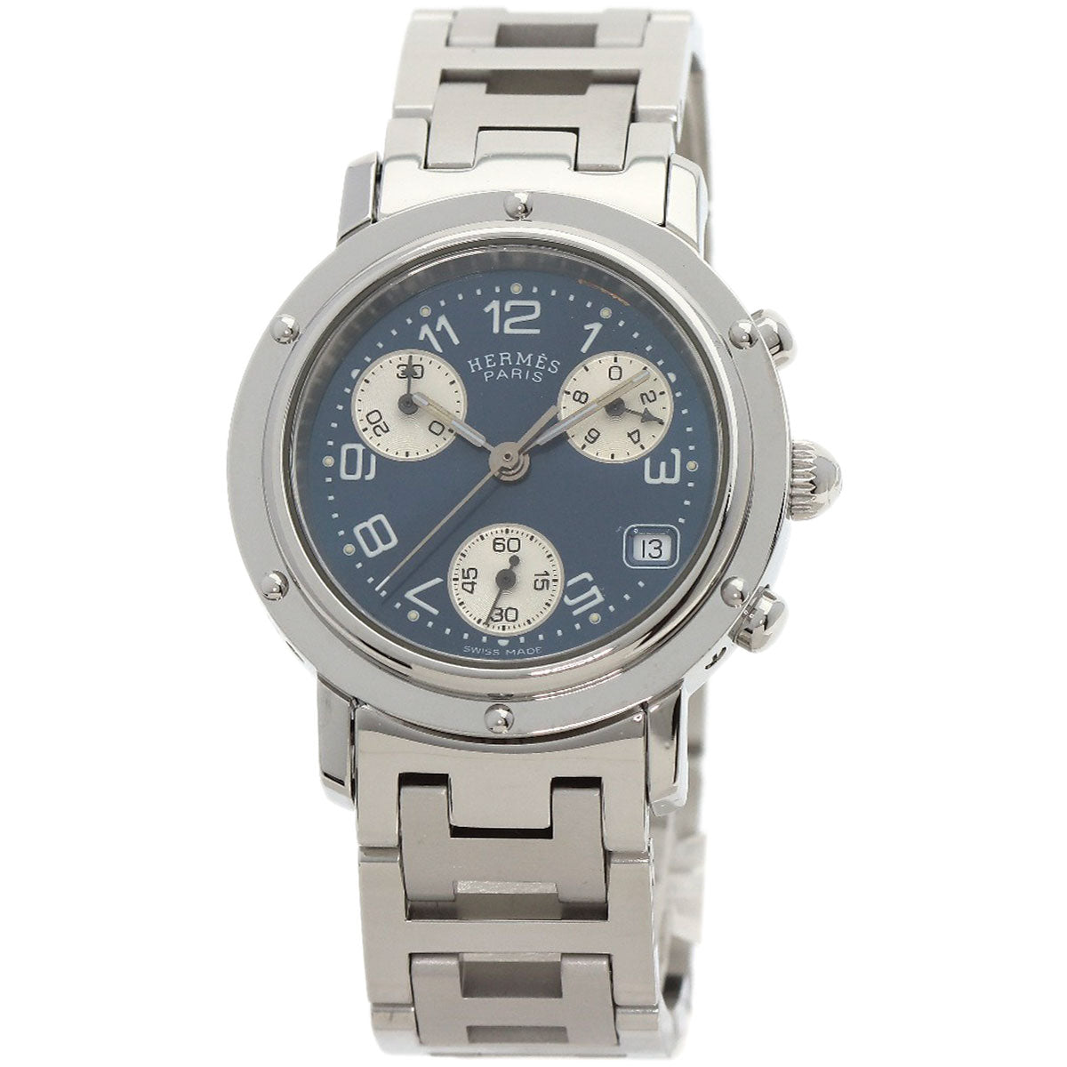 HERMES Watches Quartz CL1.310 Stainless Steel , Stainless Steel Silver Clipper Chronograph blue dial Women Used Authentic