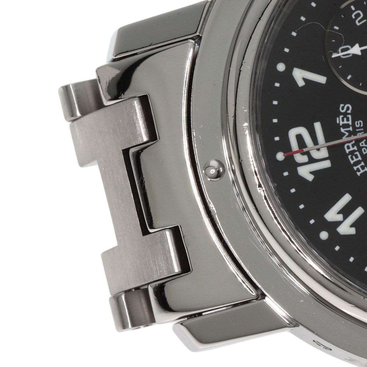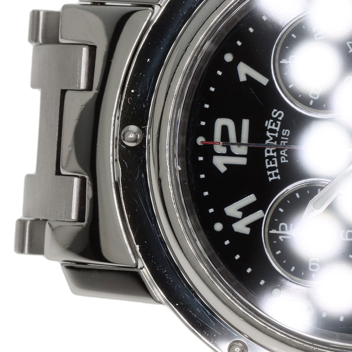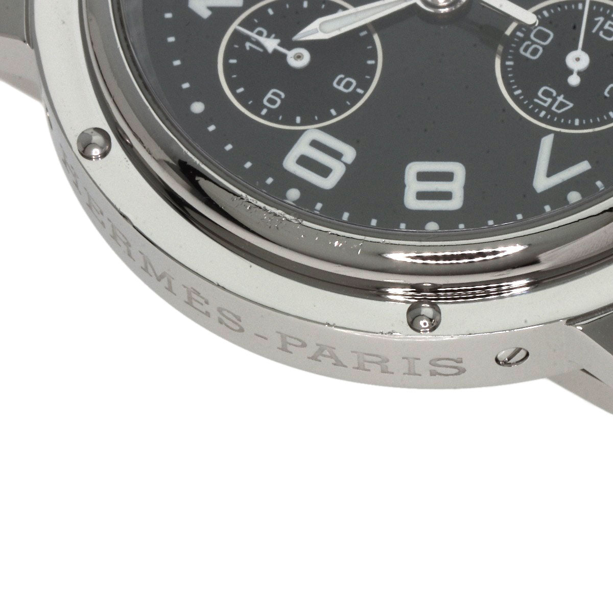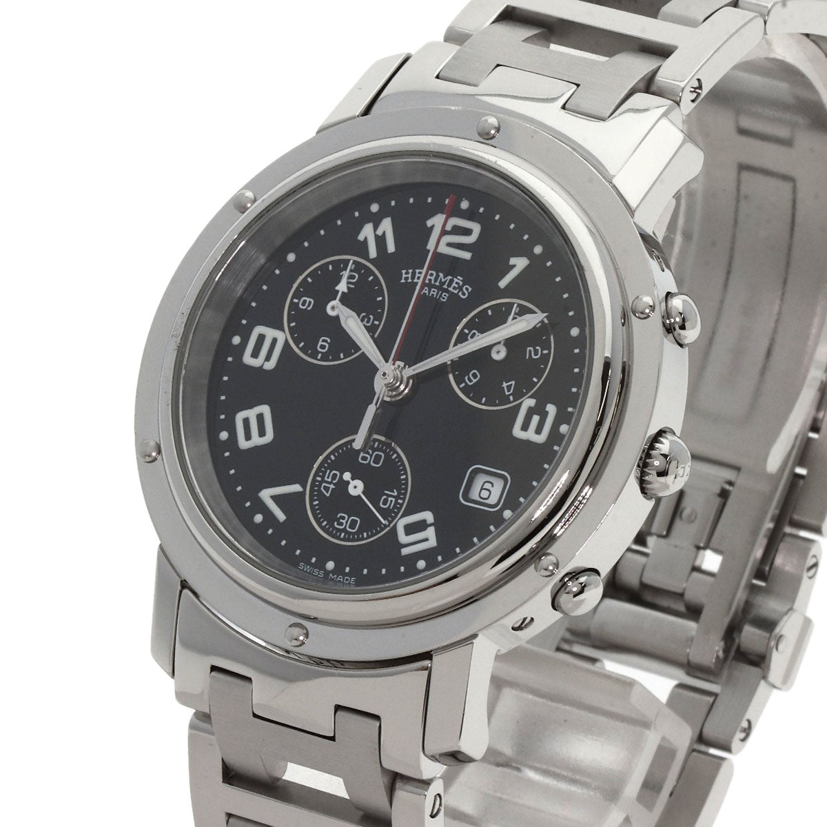 HERMES Watches Quartz CL1.910 Stainless Steel , Stainless Steel Silver Clipper Chronograph black dial mens Used Authentic