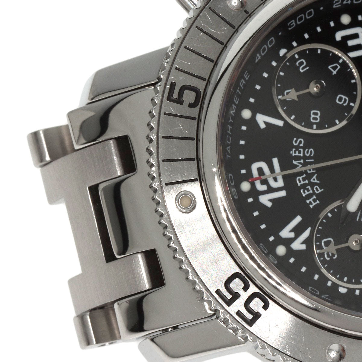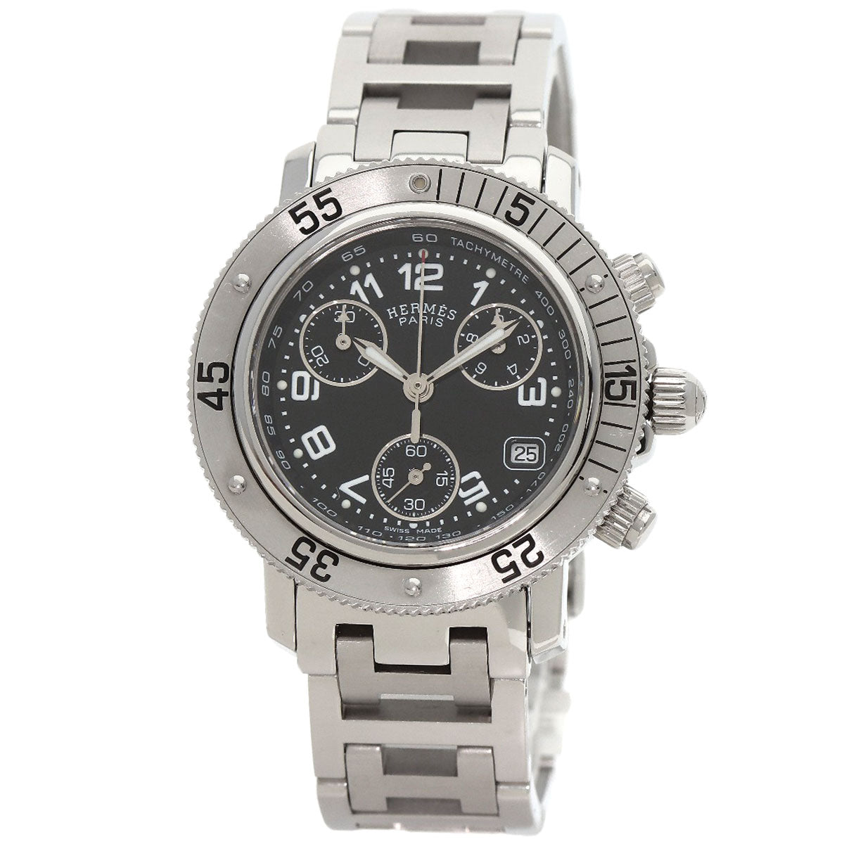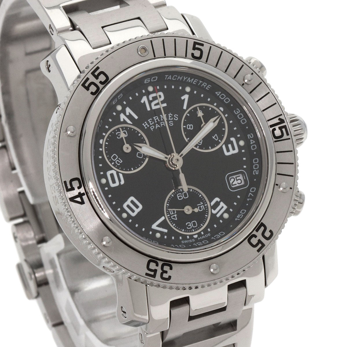 HERMES Watches Quartz CL2.310 Stainless Steel , Stainless Steel Silver Clipper Diver Chronograph black dial Women Used Authentic