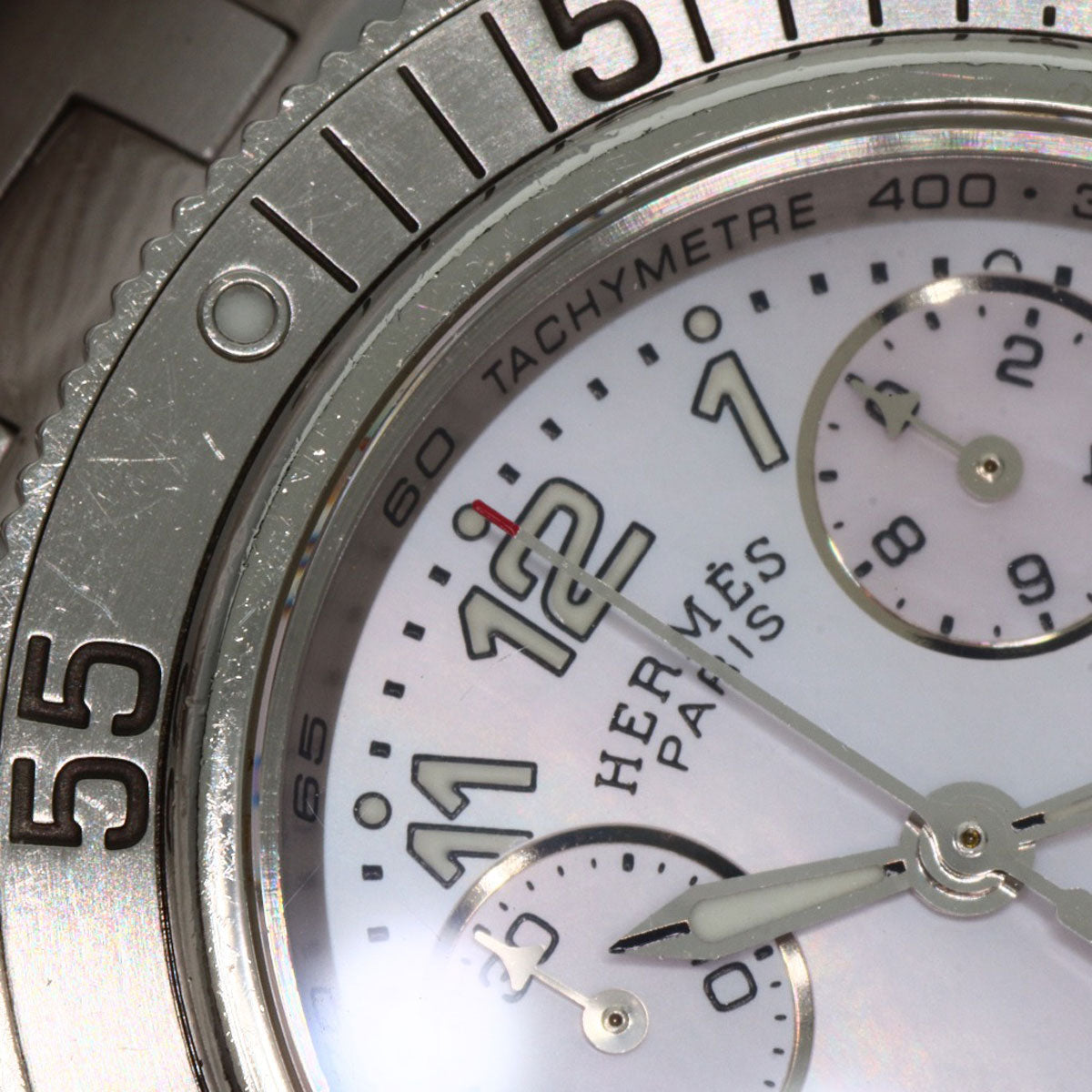 HERMES Watches Quartz CL2.310 Stainless Steel Silver Clipper Diver Chronograph New Buckle Pink shell dial