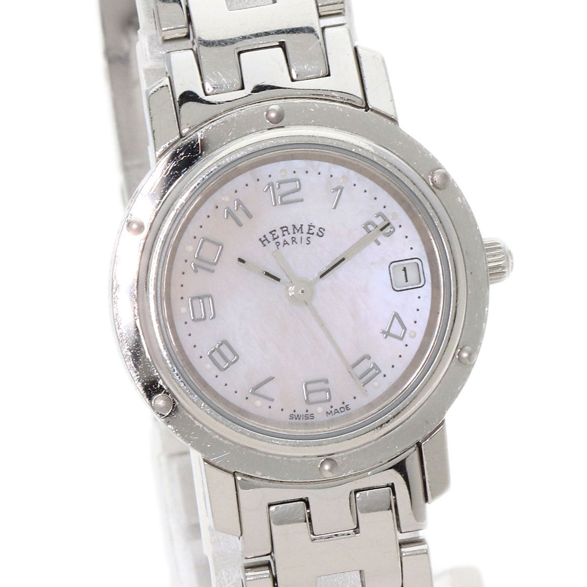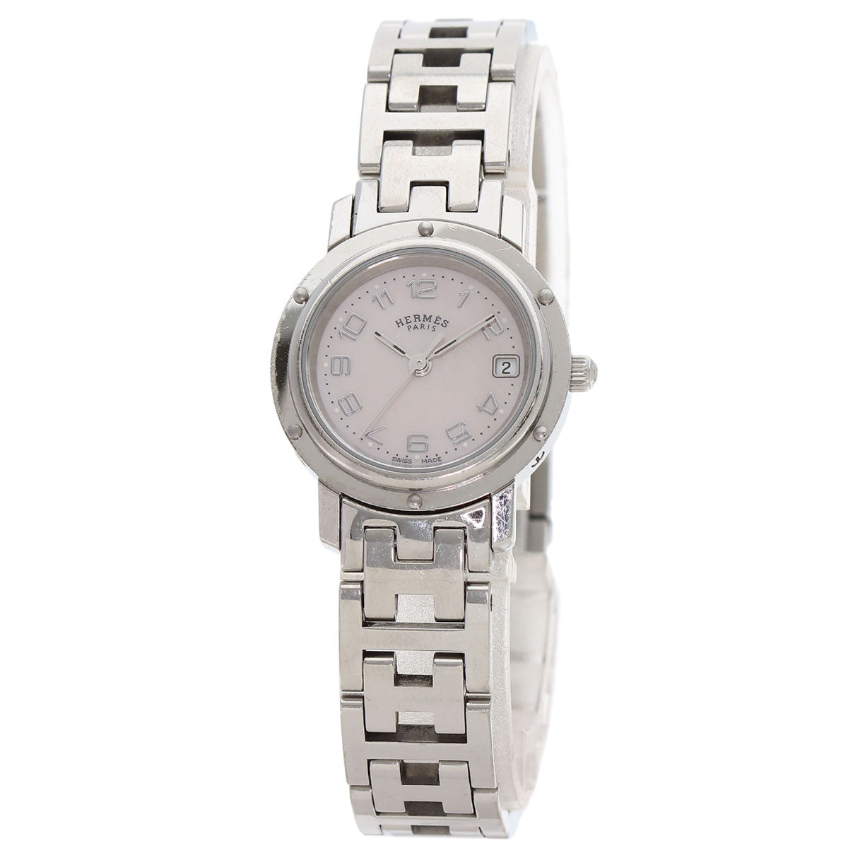HERMES Watches Quartz CL4.210 Stainless Steel , Stainless Steel Silver Clipper Nacle New Buckle Pink shell dial Women Used Authentic