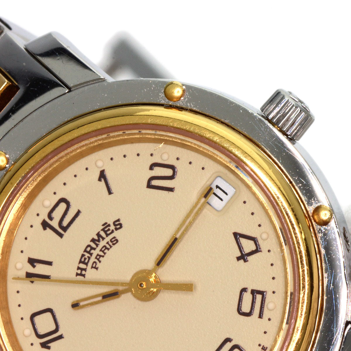 HERMES Watches Quartz CL4.220 Stainless Steel, Combination gold Clipper Old Belt Ivory dial Women Used Authentic