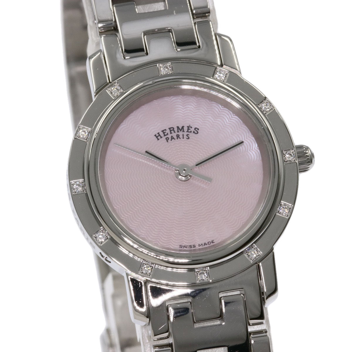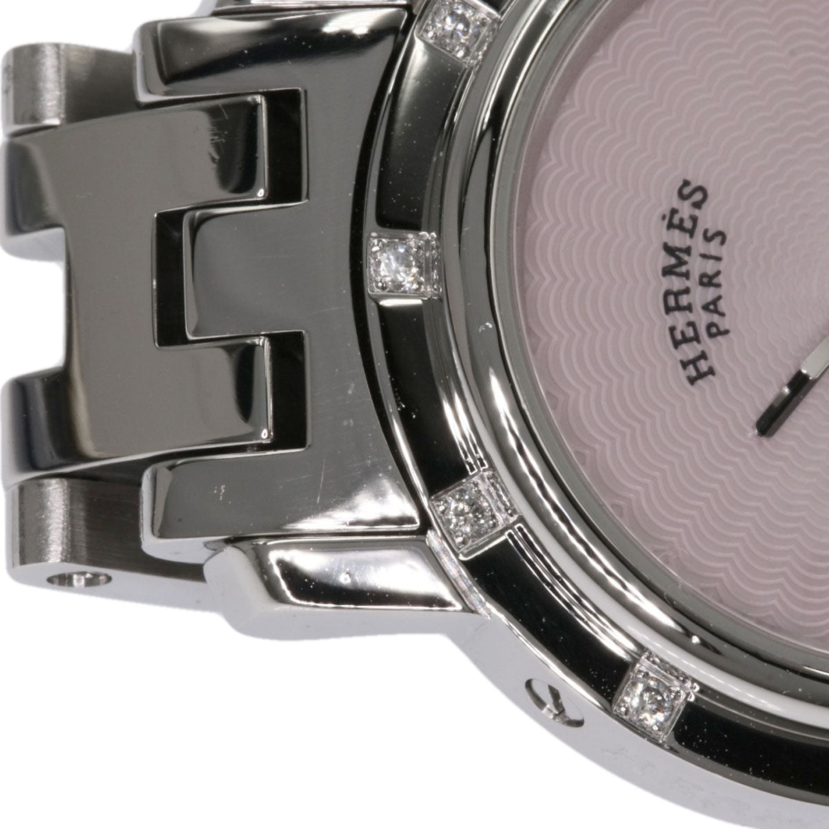 HERMES Watches Quartz CL4.230 Stainless Steel , Stainless Steel Silver Clipper Nacre 12P Diamond Pink shell dial Women Used Authentic