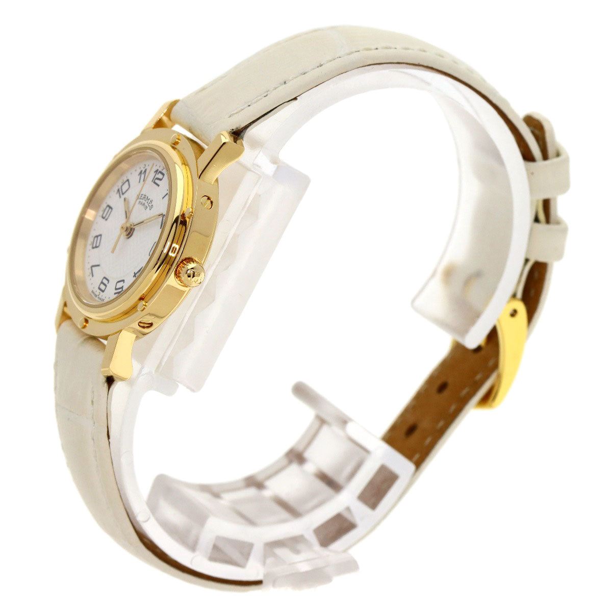 HERMES Watches Quartz CL4.285 K18YG, leather gold Clipper white dial Women Used Authentic