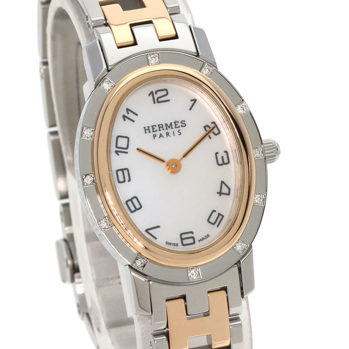 HERMES Watches Quartz CO1.222 Stainless Steel, SSxPGP, Diamond gold Clipper oval White shell dial Women Used Authentic