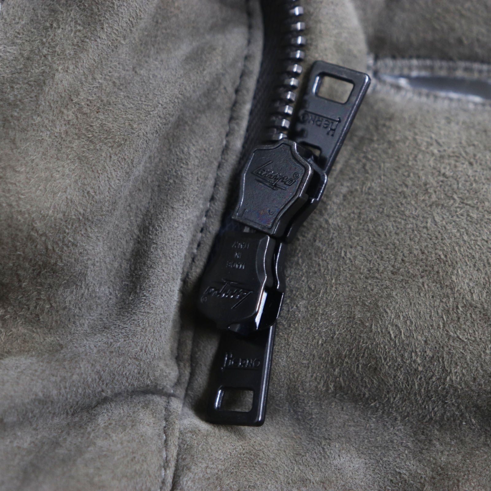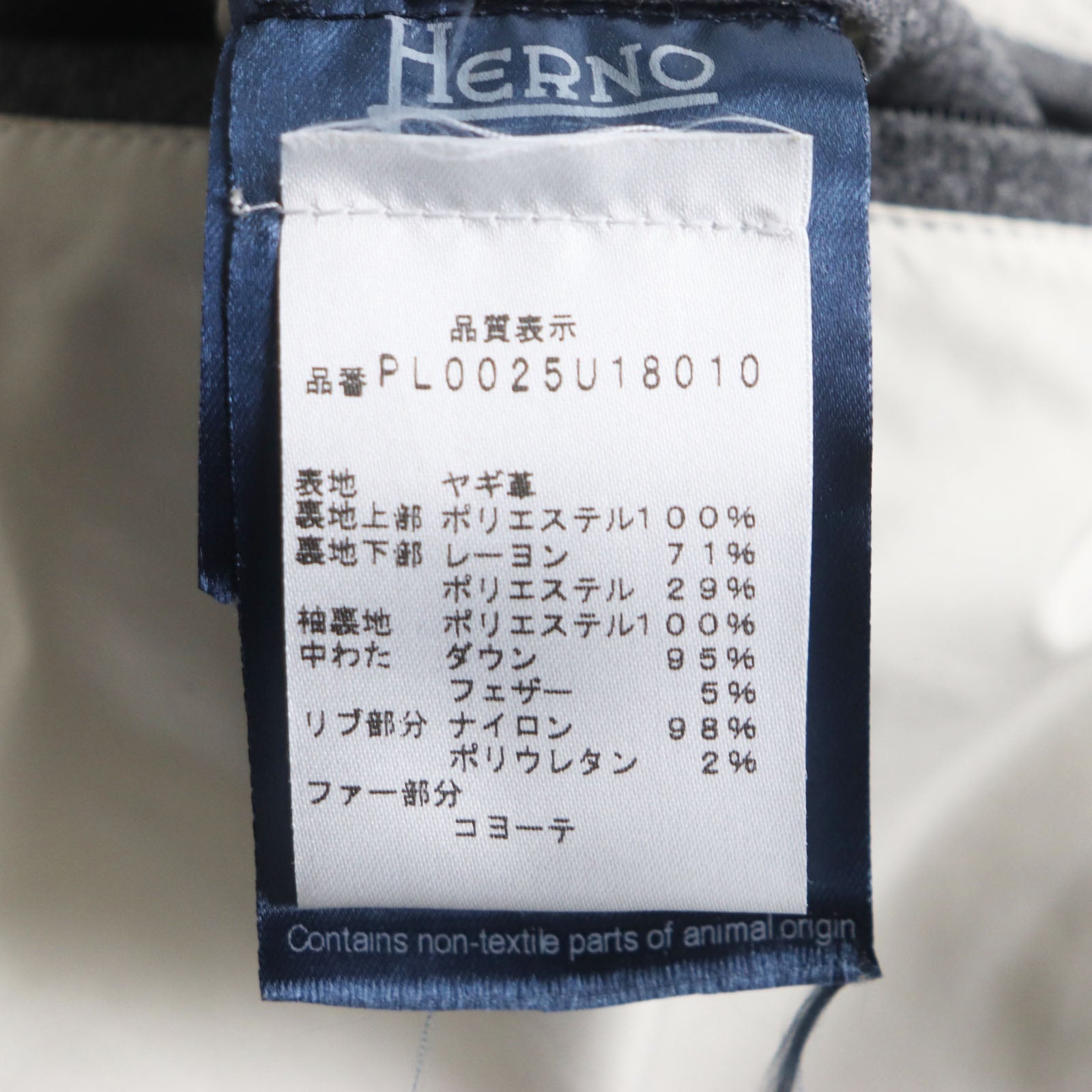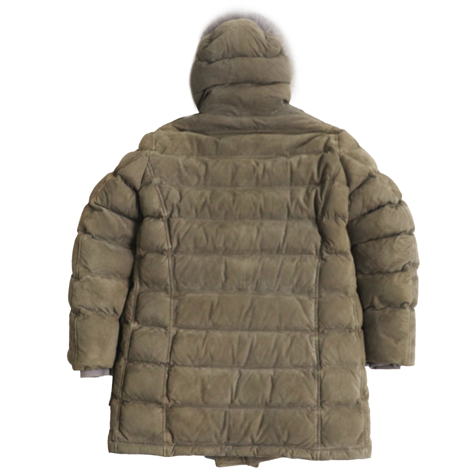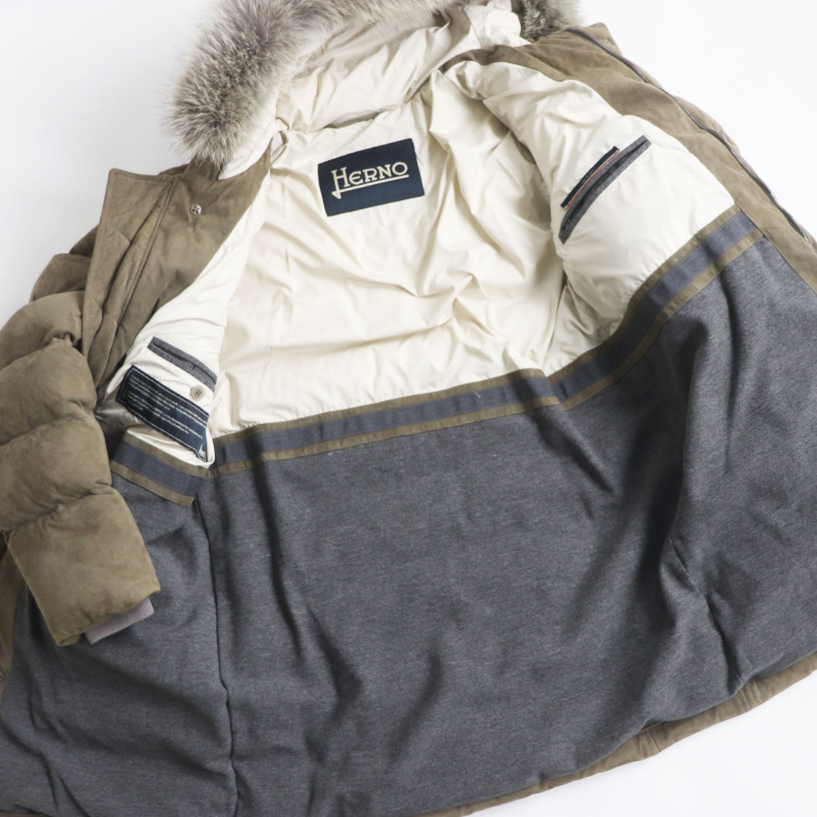 Herno Down jacket PL0025U18010 Outer: Goatskin, Lining: 100% Polyester, Lining: 71% Rayon, Lining: 29% Polyester, Lining: 100% Polyester, Filling: 90% Down, 10% Feather, Rib: 98% Nylon, 2% Polyurethane, Fur: Coyote Khaki gray mens 44 Used Authentic