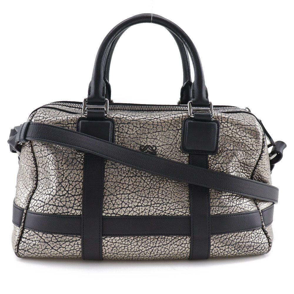 LOEWE Handbag Calfskin Black, Silver Mini Boston 2WAYShoulder Women Used Authentic