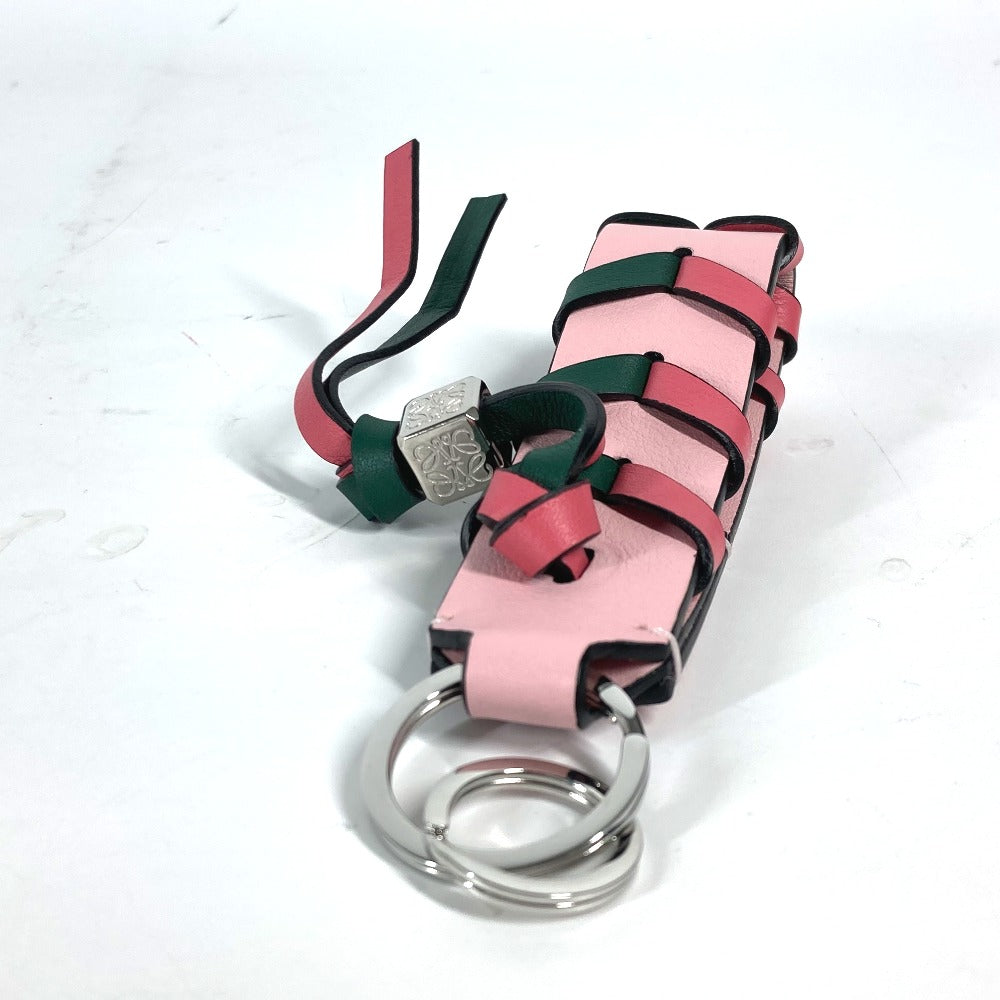 LOEWE key ring leather Pink x green logo anagram bicolor braided strap Women Used Authentic