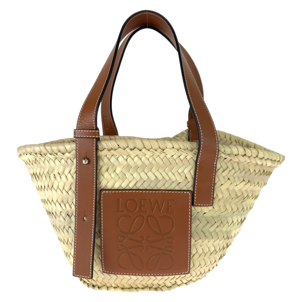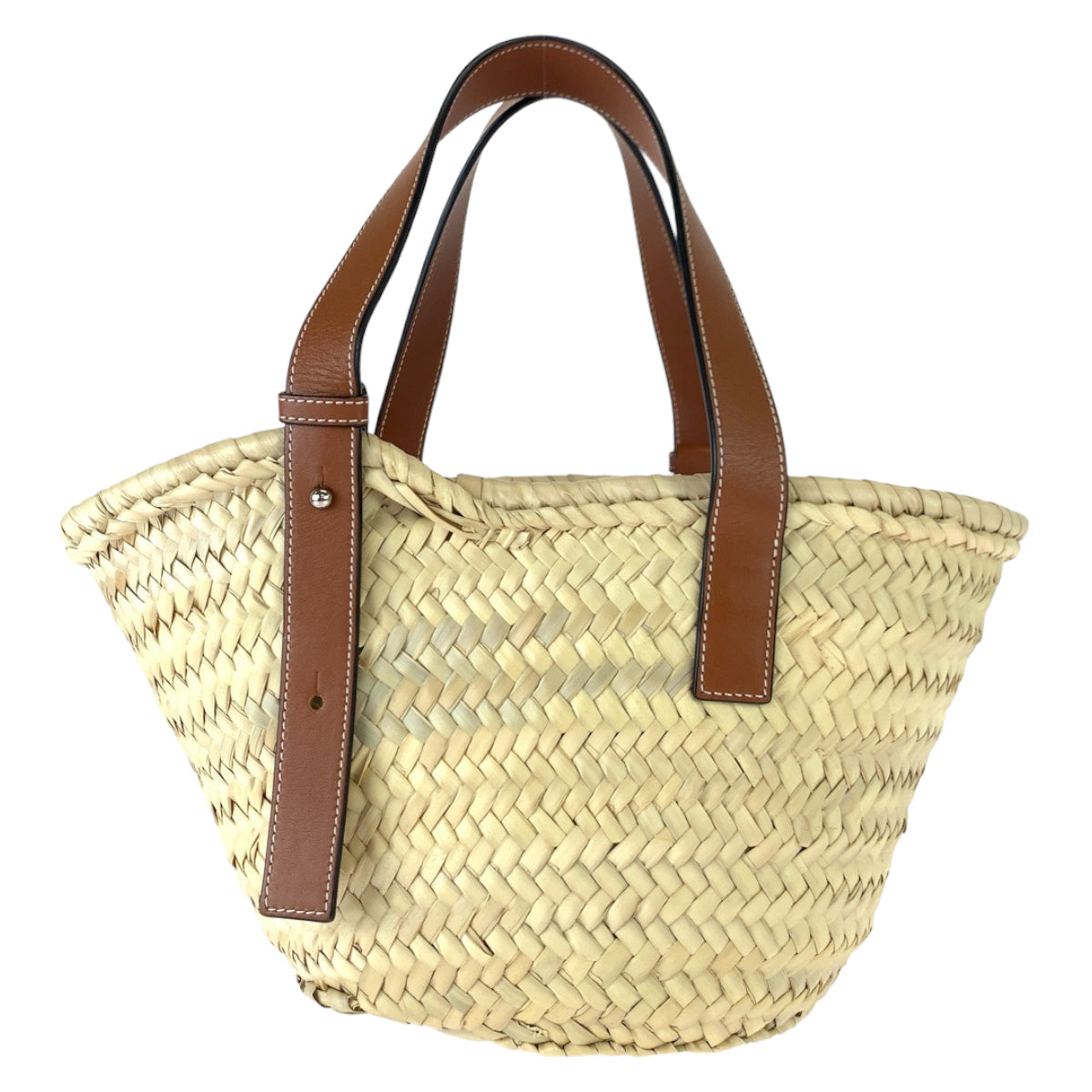 LOEWE Tote Bag 327 02 S93 Raffia, Leather Beige Brown SilverMetal Tote Bag handbag basket bag anagram Basket bag Women Used Authentic