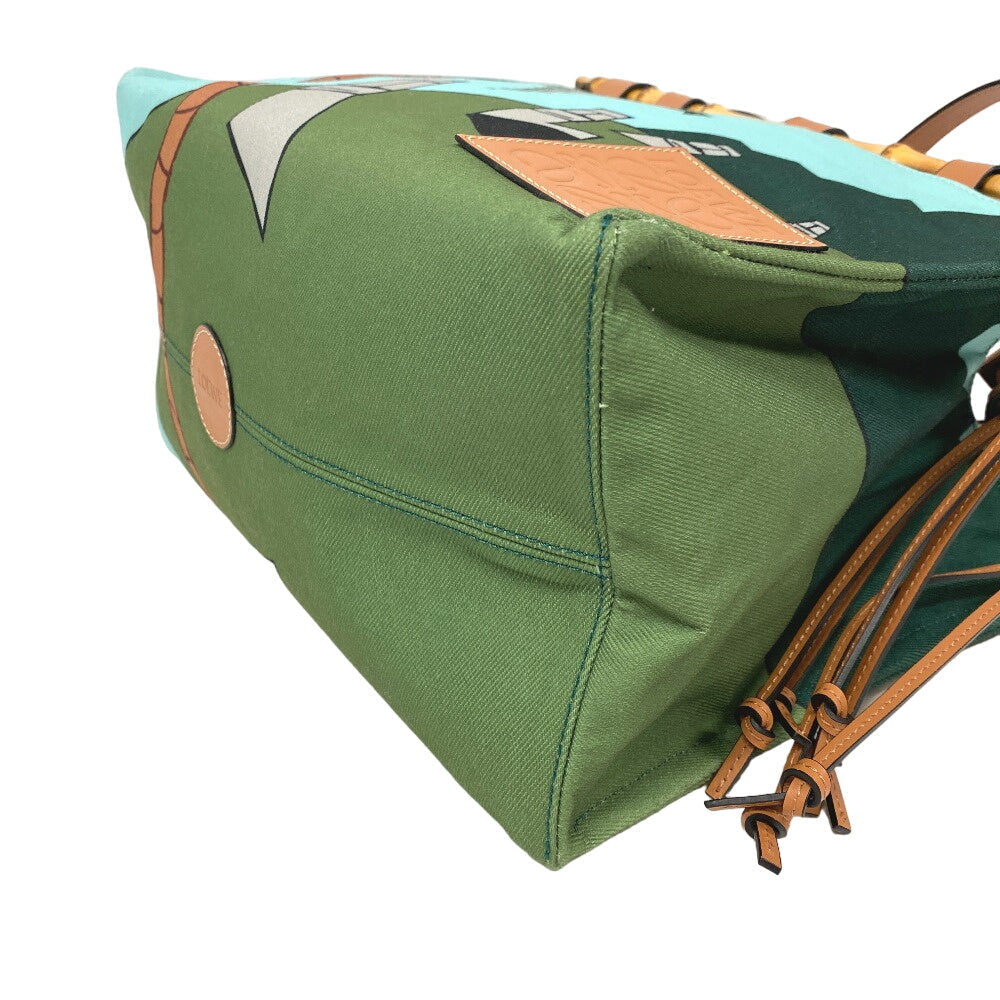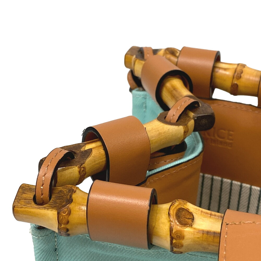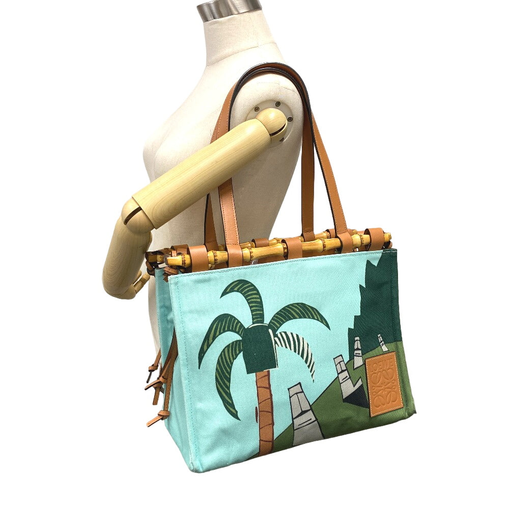 LOEWE Tote Bag Canvas, Leather Light blue Bamboo cushion Women Used Authentic