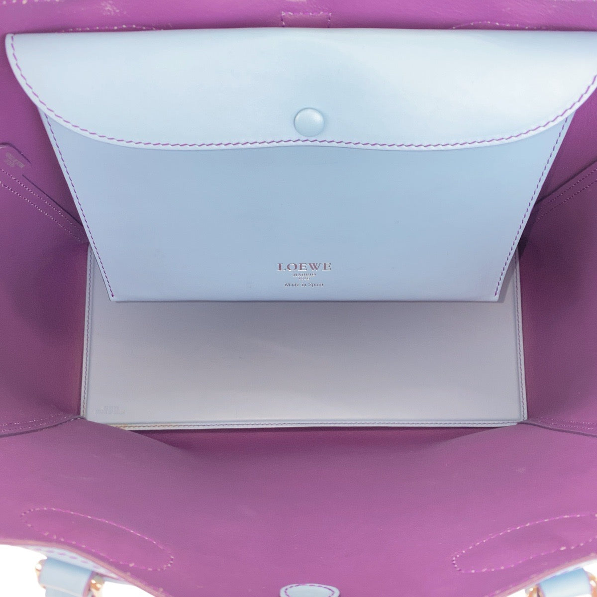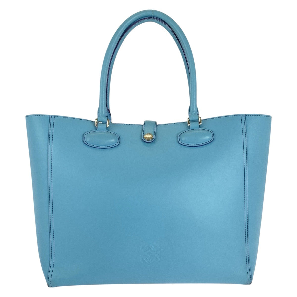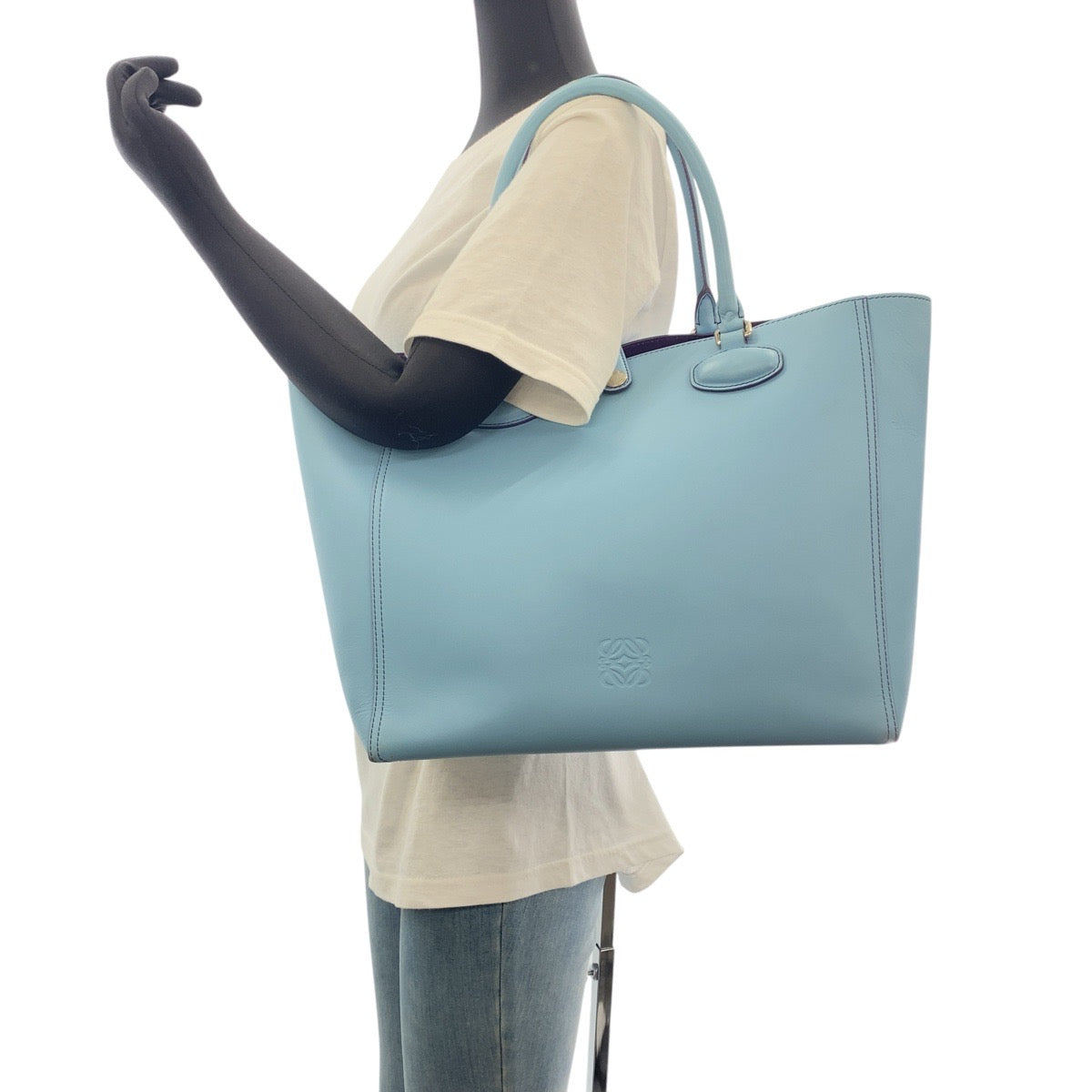 LOEWE Tote Bag leather Light Blue Purple SilverMetal Tote Bag Shoulder Bag anagram Leo Women Used Authentic