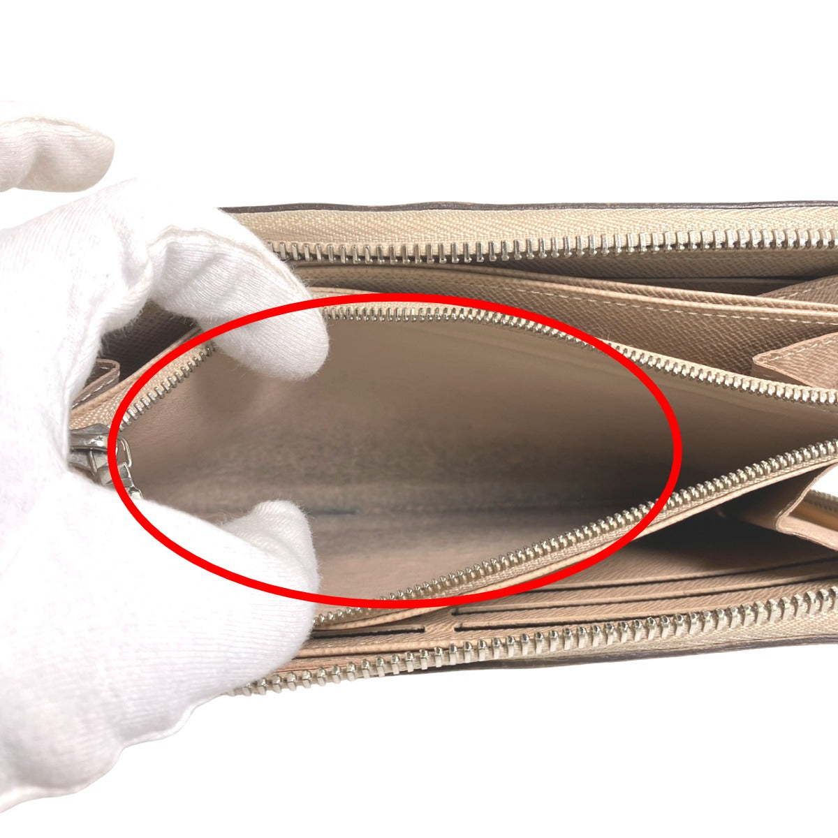 There is stain on the bottom of the interior zip pocket (see image 14)