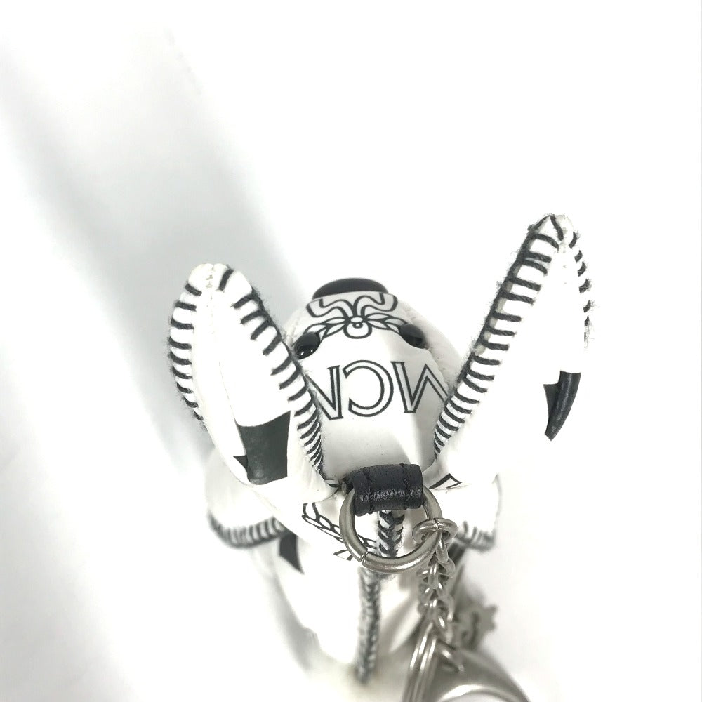 MCM key ring leather white Visetos logo Rabbit rabbit Women Used Authentic