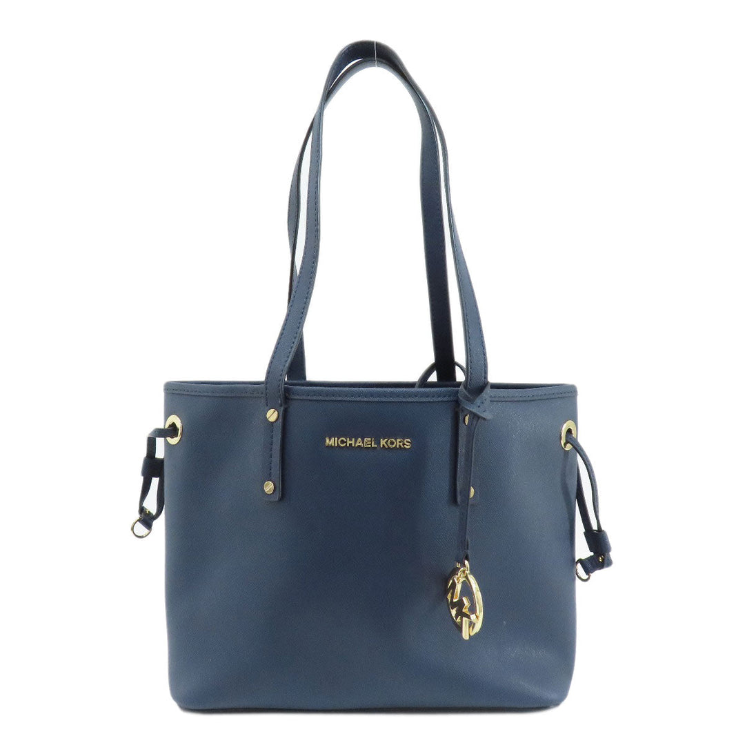 MICHAEL KORS Tote Bag PVC Navy logo Women Used Authentic