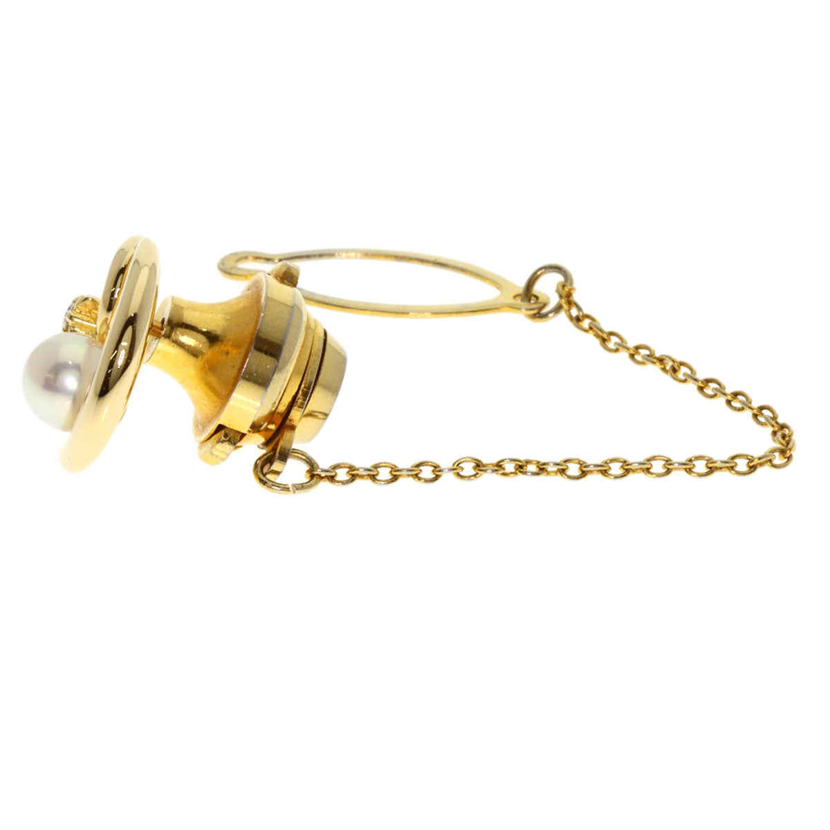 MIKIMOTO Brooch 18K Yellow Gold gold Pearl Diamond Moon Motif Women Used Authentic