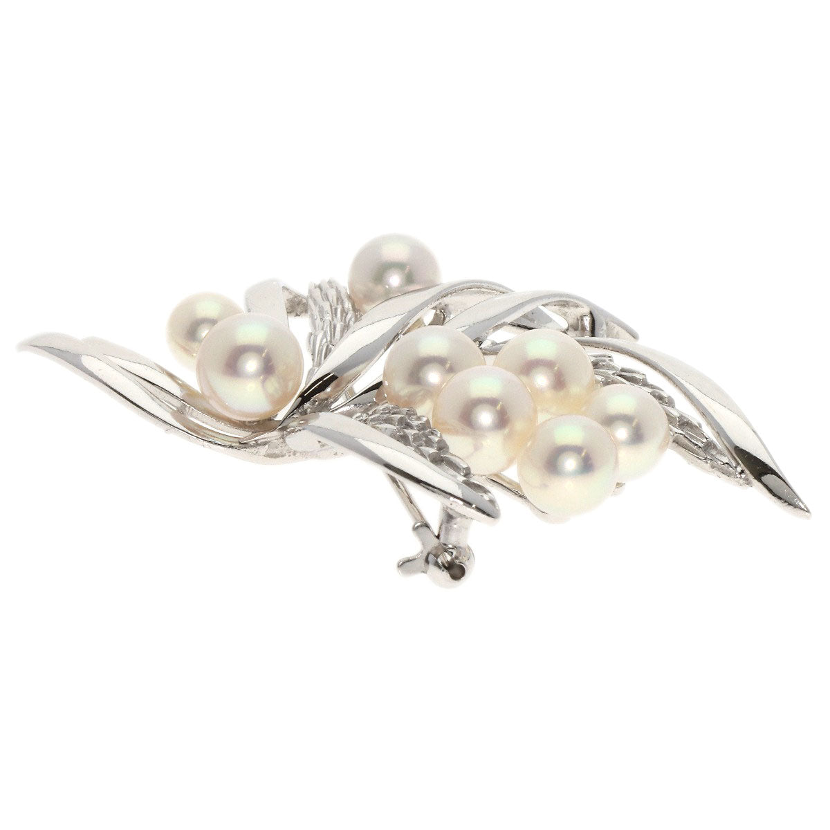 MIKIMOTO Brooch K14WG Silver Akoya pearl Pearl Women Used Authentic