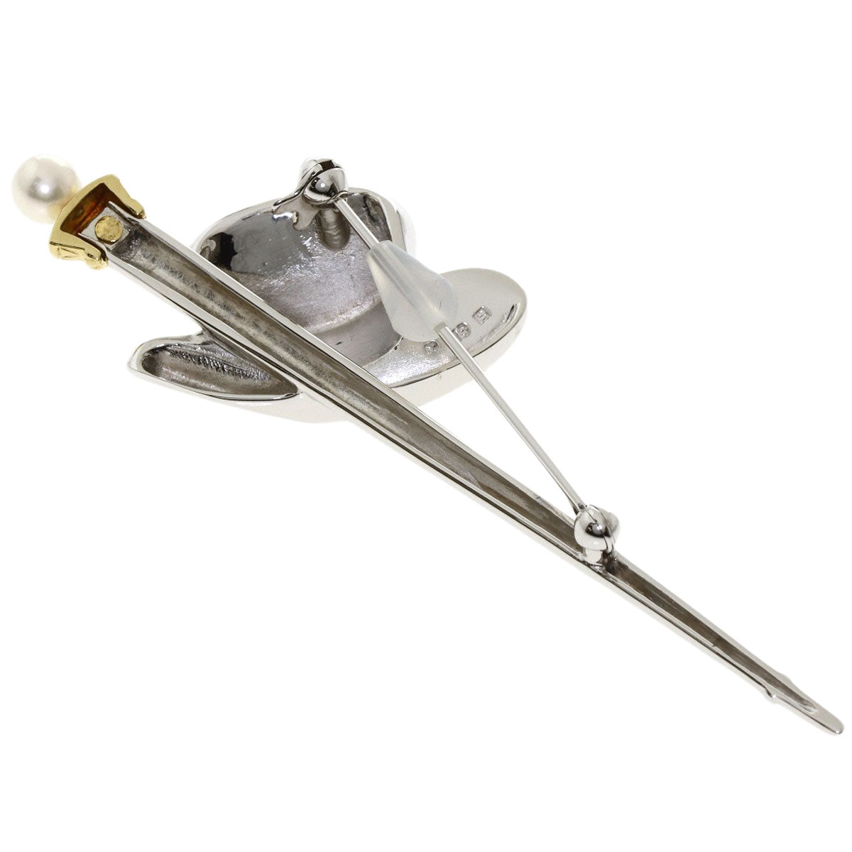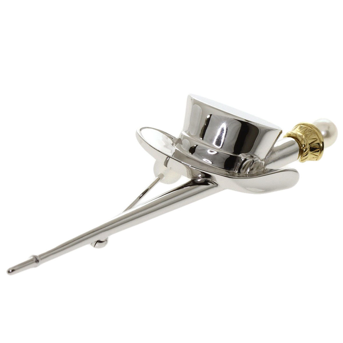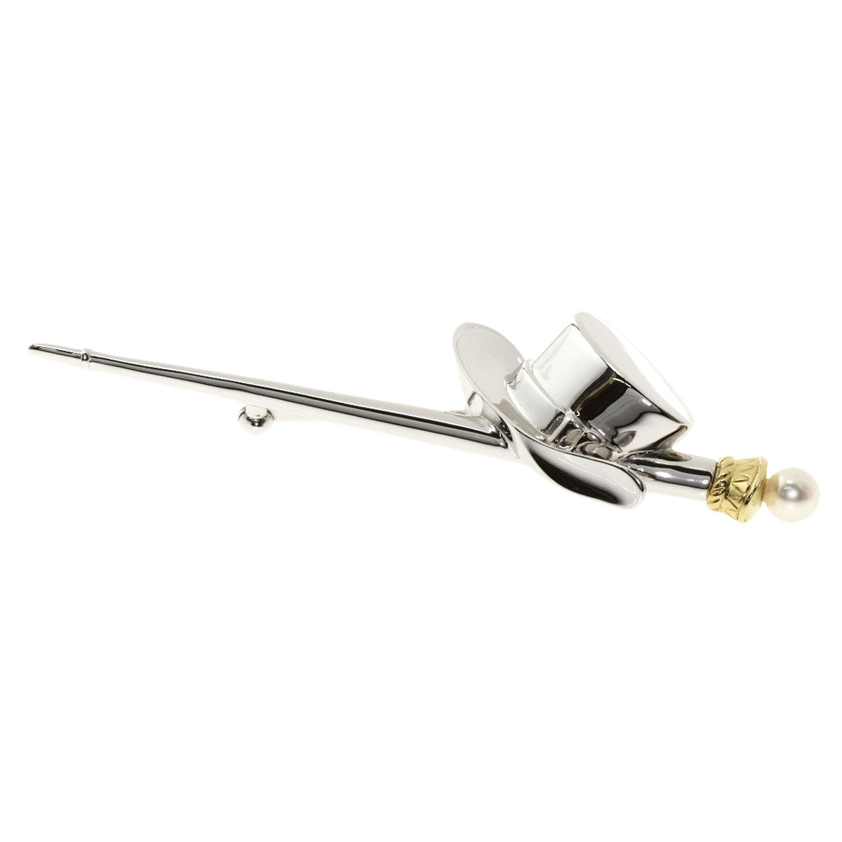 MIKIMOTO Brooch SV , K18YG Silver Top hat and walking stick motif Pearl Women Used Authentic