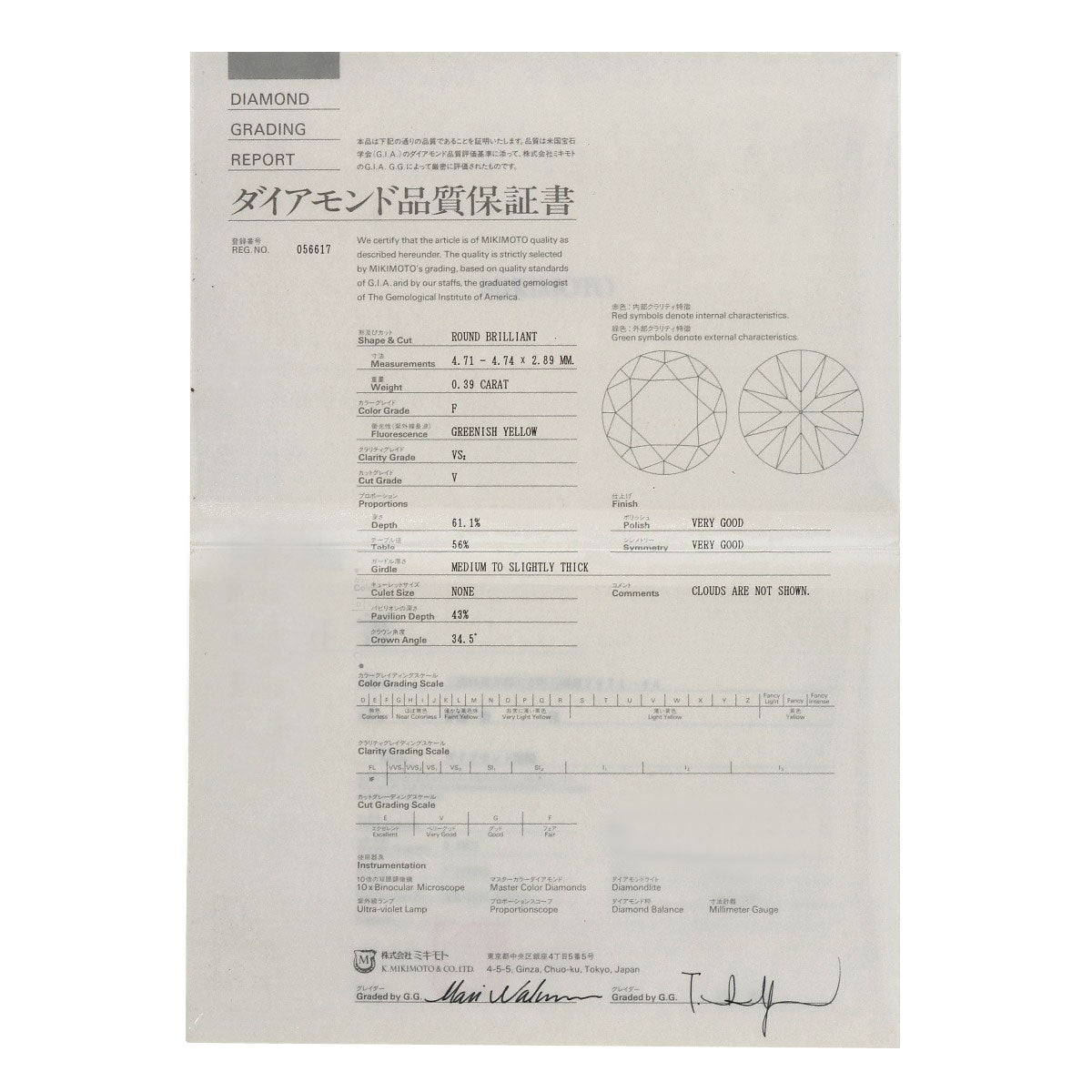 Detailed remarks: Top (cm) 5.6x5.4 ■Specs D 0.39ct Newly polished