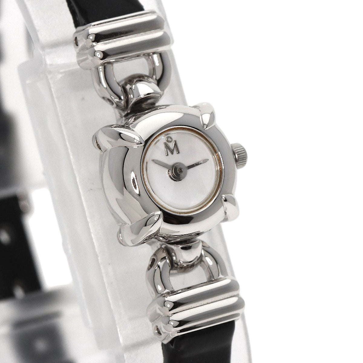 MIKIMOTO Watches Quartz Stainless Steel, Leather Silver Round face 2WAY Necklace included White shell dial Women Used Authentic