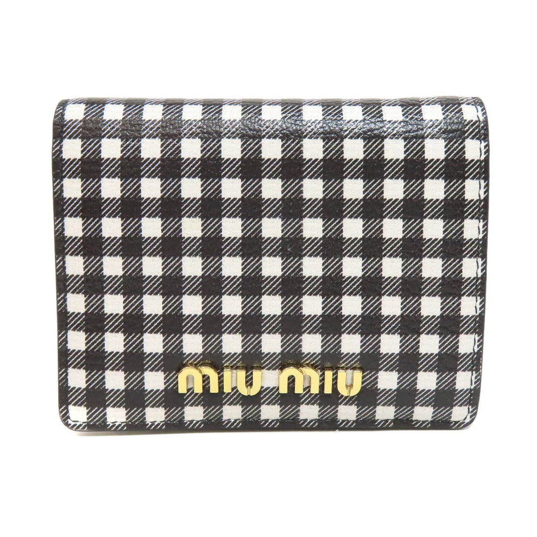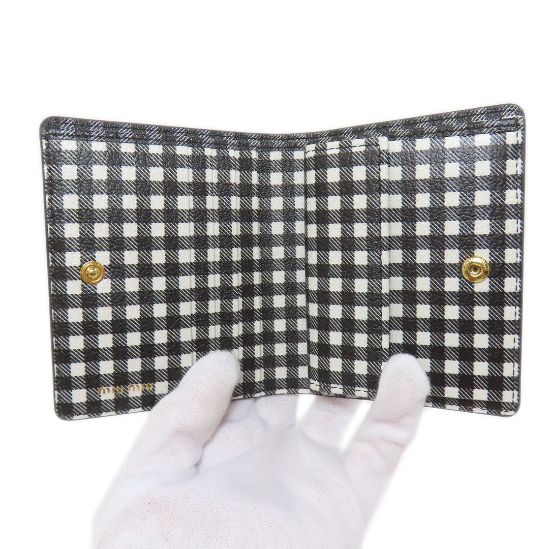 MIUMIU Bifold Wallet PVC black Check Pattern Women Used Authentic