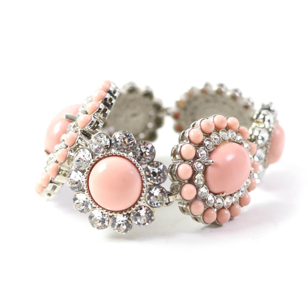 MIUMIU bracelet Plating , Rhinestones , Natural Stones Pink Silver Bijou floral motif Women Used Authentic