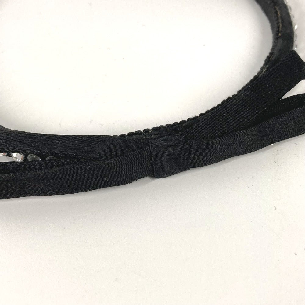 MIUMIU hair accessory Satin black ribbon rhinestone ribbon Women Used Authentic