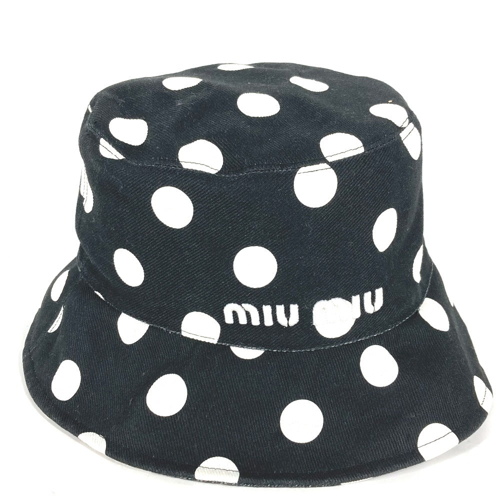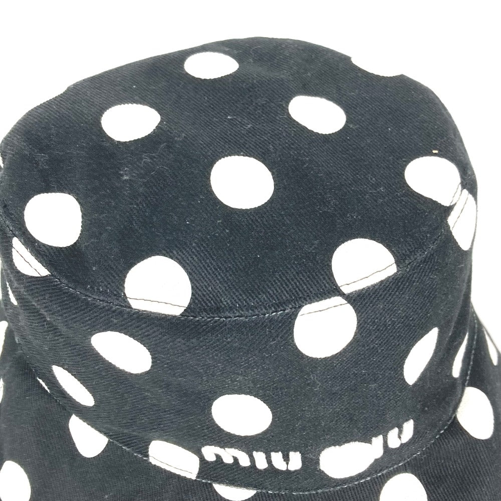 MIUMIU hat 5HC196 cotton black logo dot polka dot S