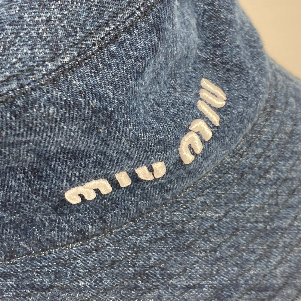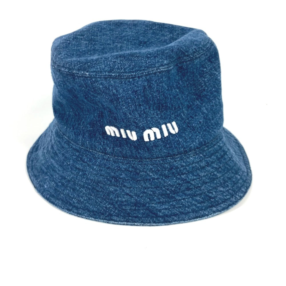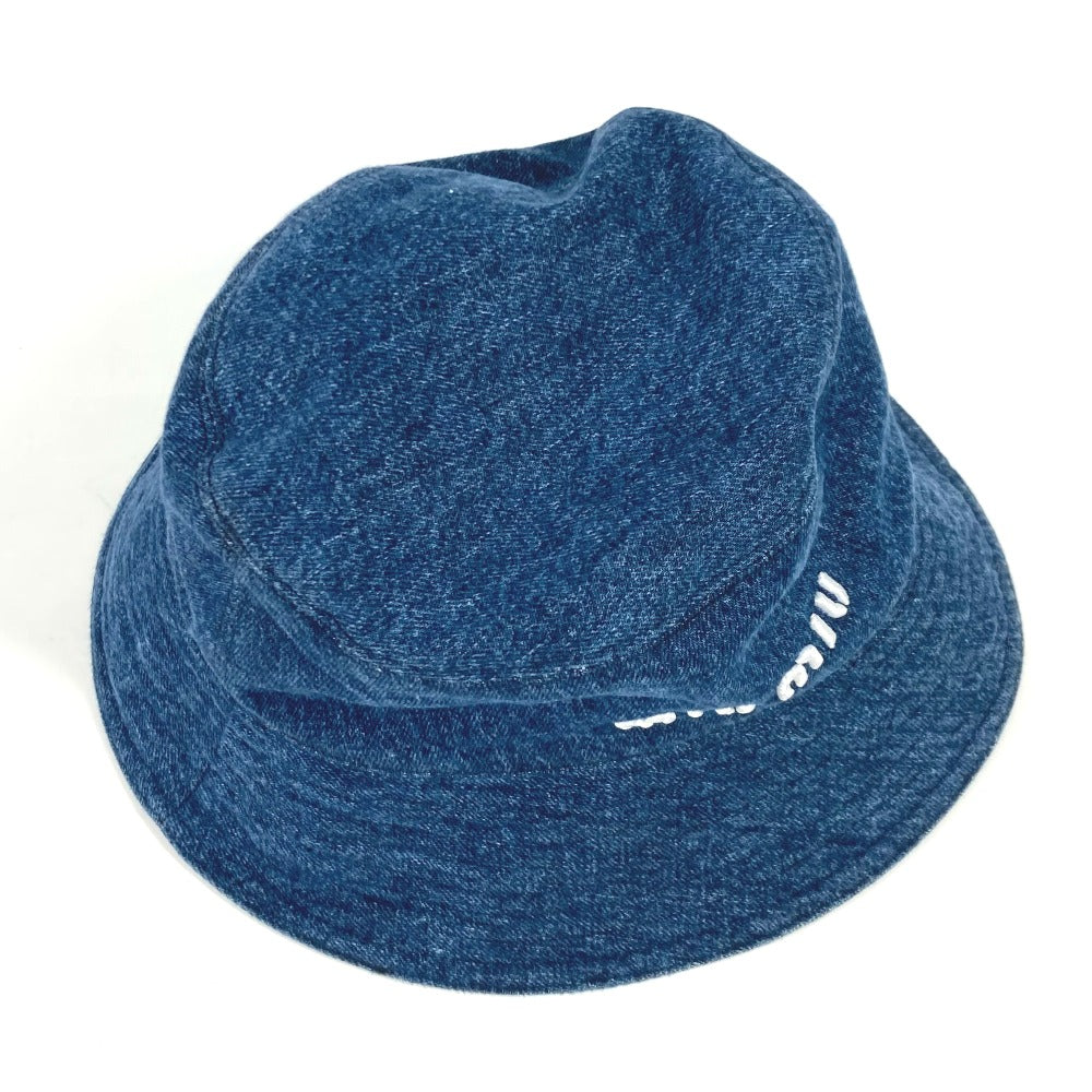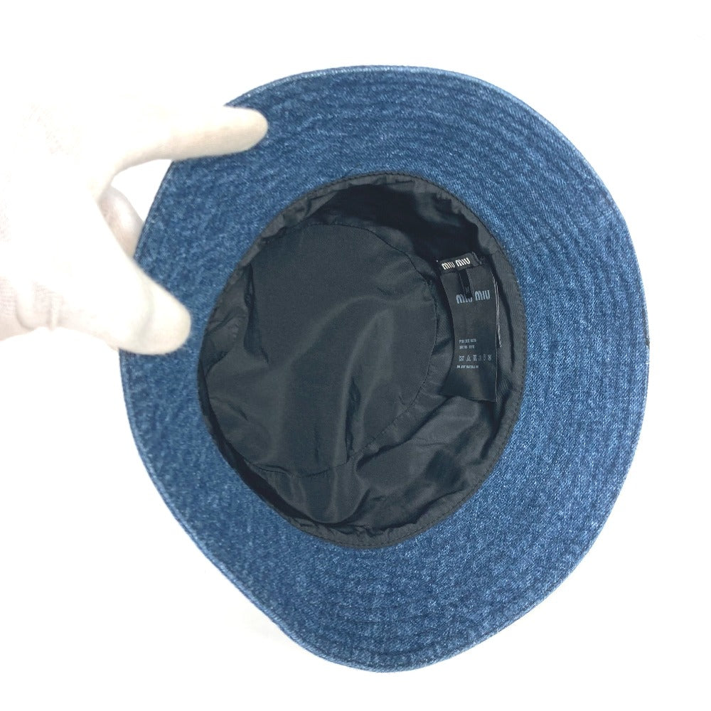 MIUMIU hat 5HC196 cotton blue denim logo Women M Used Authentic