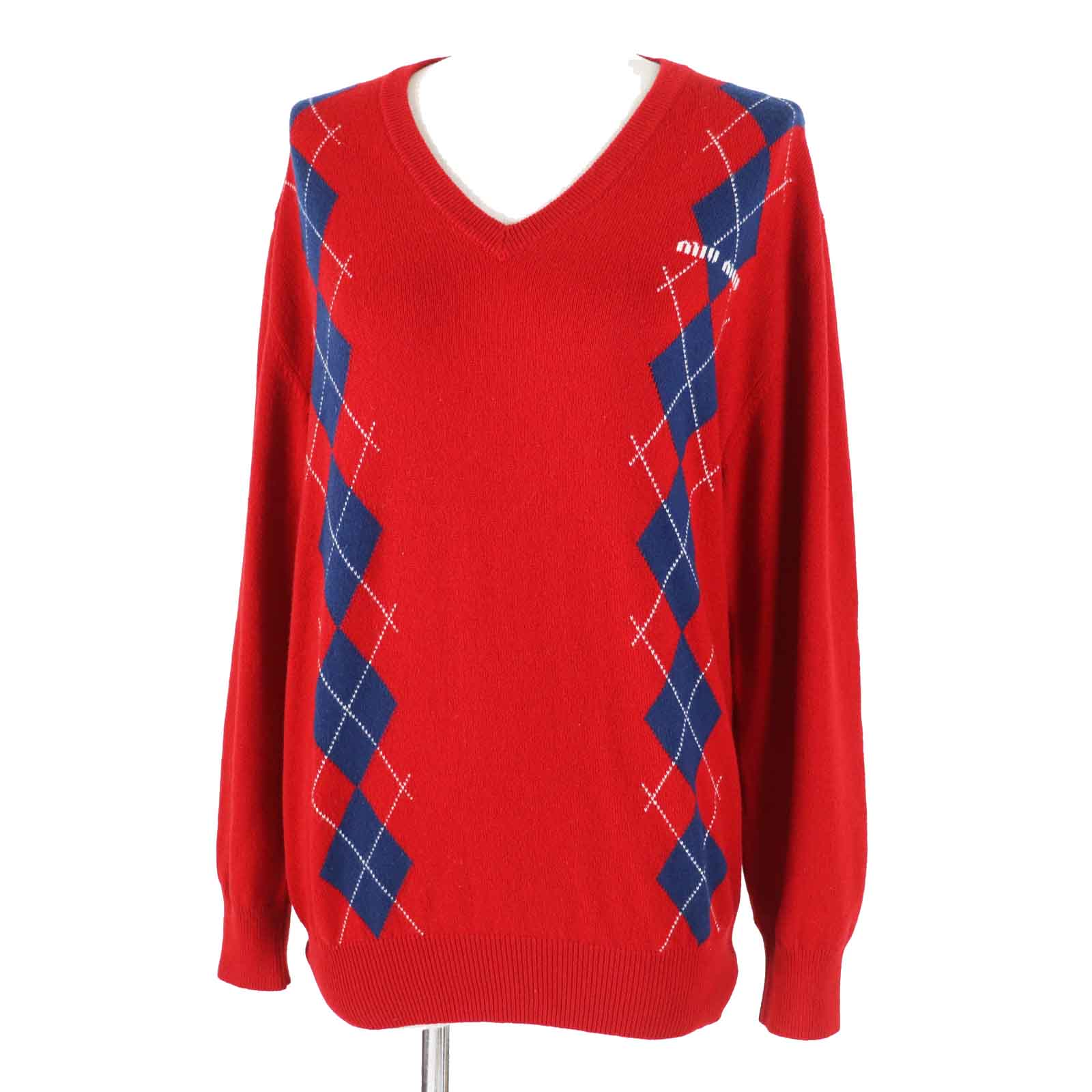 MIUMIU knit MML691 Outer material: 89% cashmere, Outer material: 10% polyamide, Outer material: 1% elastane, Part: 100% cashmere Red blue Women 36 Used Authentic