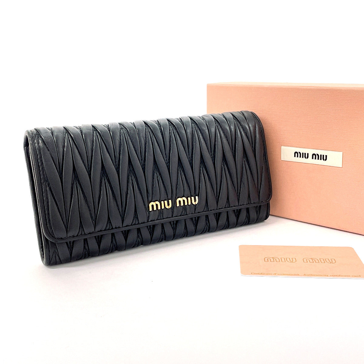 MIUMIU Long Wallet Purse 5MH109 leather black Materasse