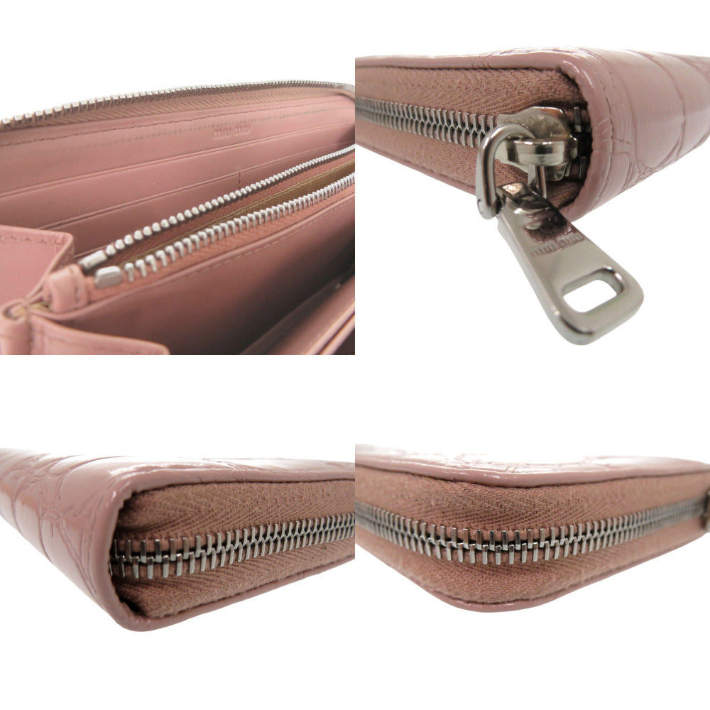 MIUMIU Long Wallet Purse 5ML506 leather Muget Croc Embossed Zip Around Patent Leather Women Used Authentic