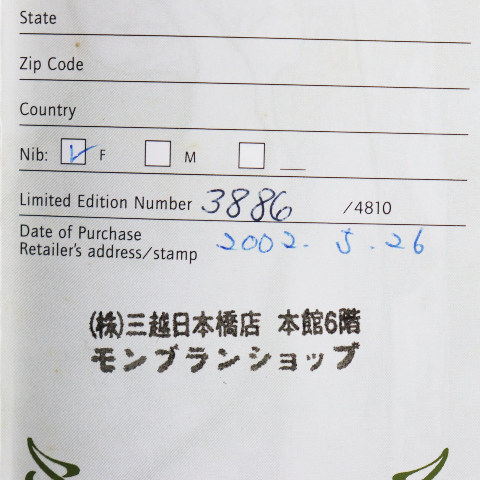 The warranty states that it is an F nib, but the correct nib is an M nib.