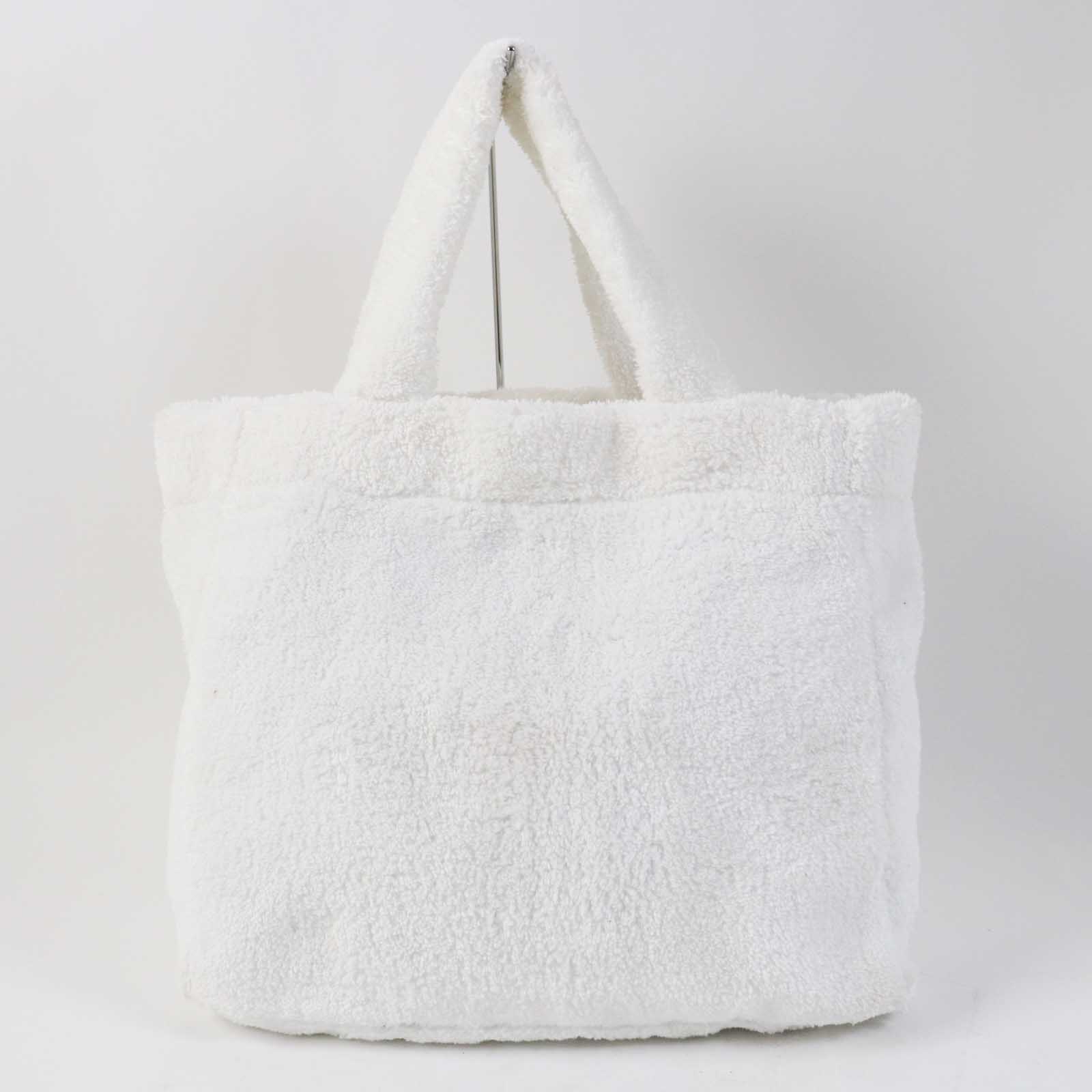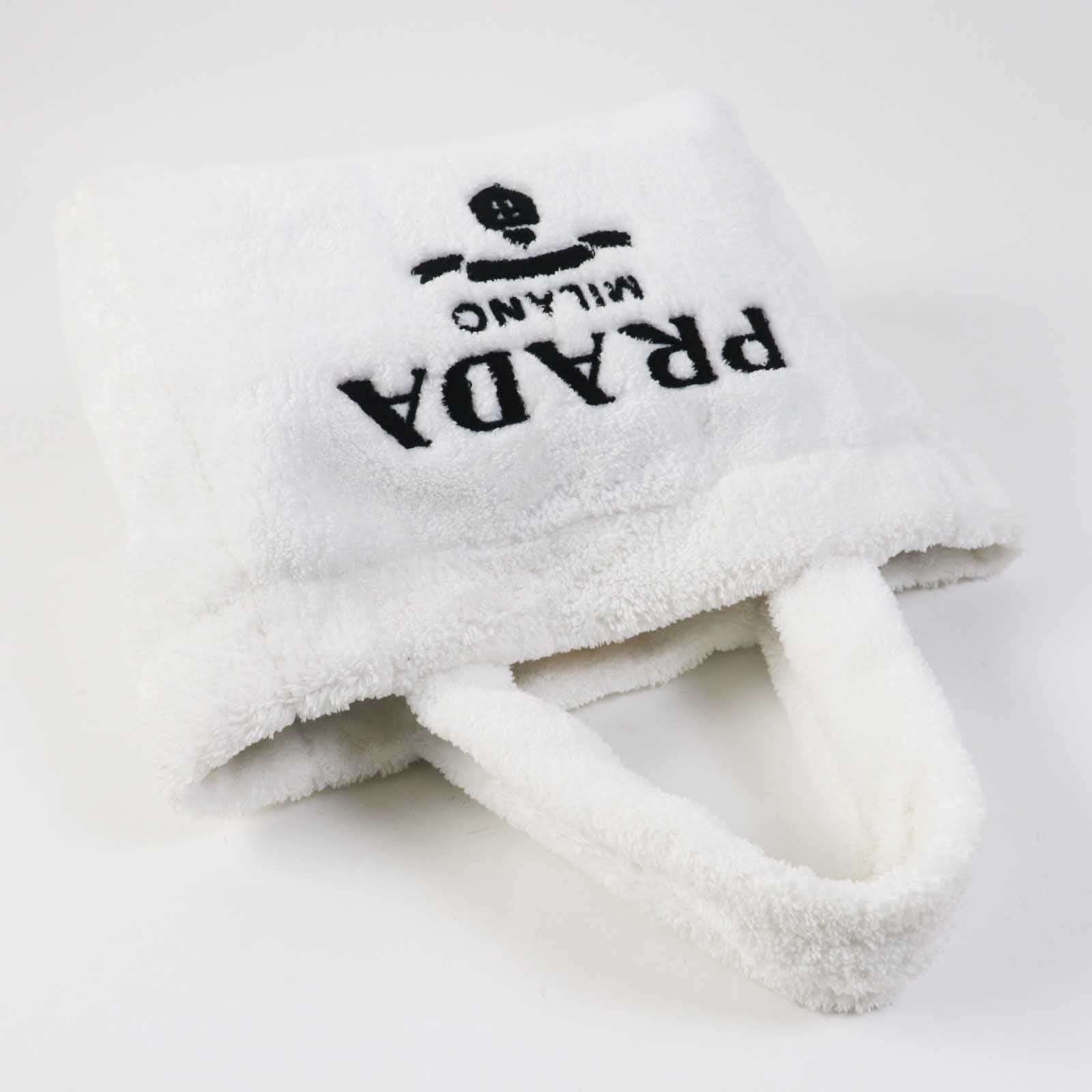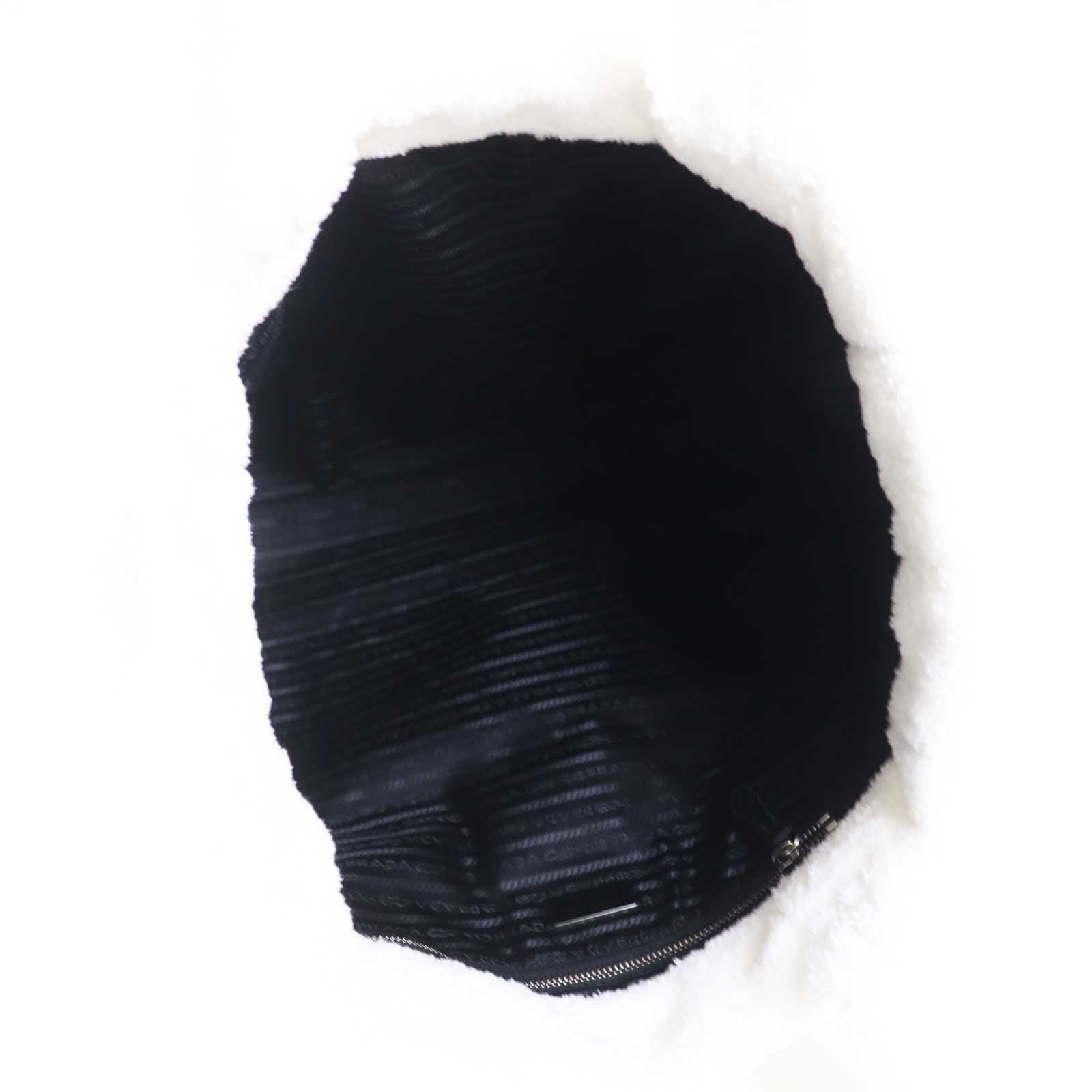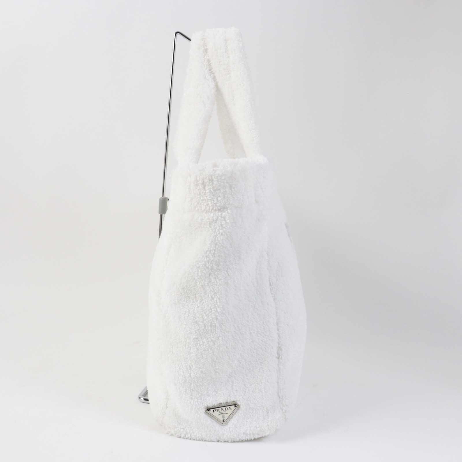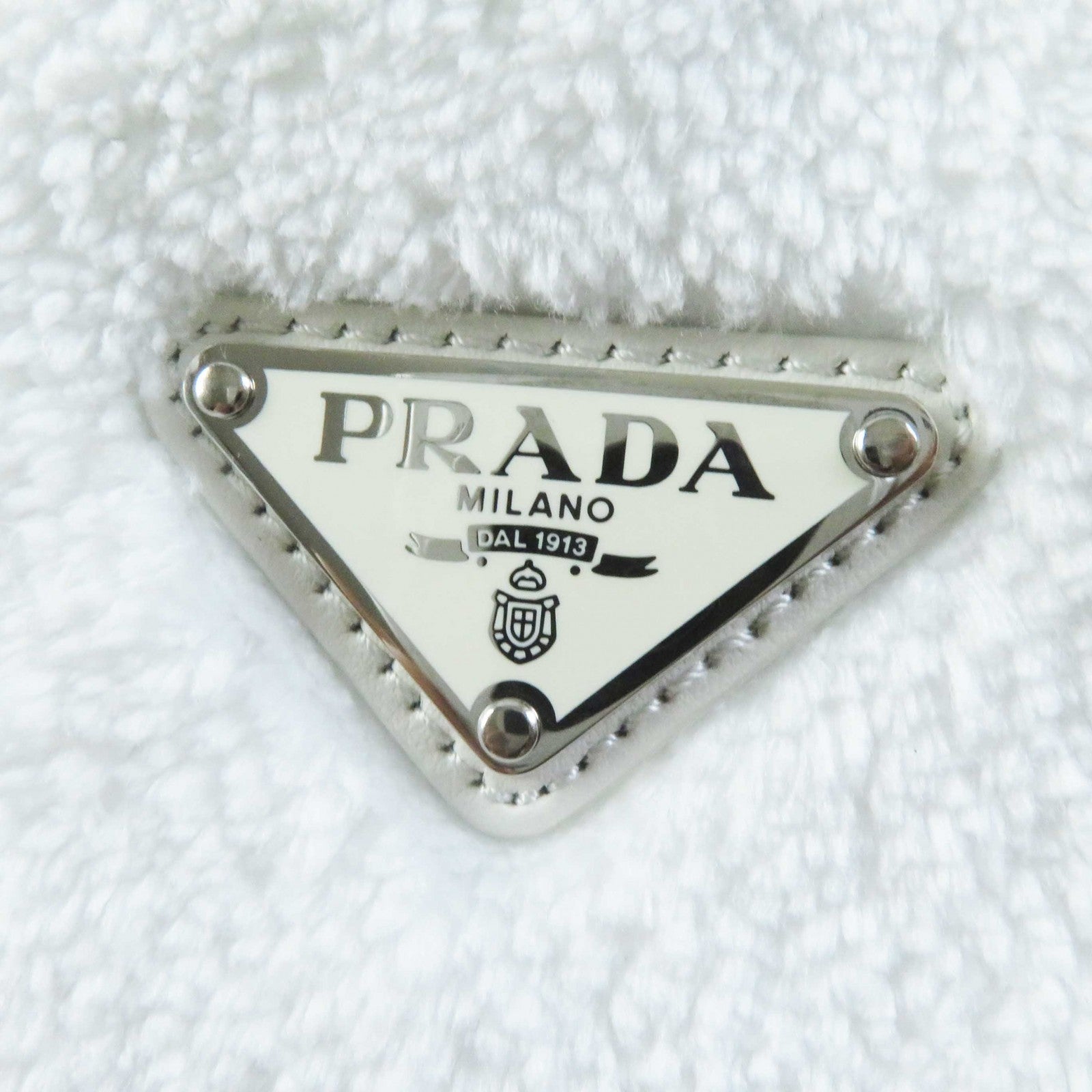 PRADA Tote Bag 1BG130 Pile fabric Bianco Nero terry Women Used Authentic