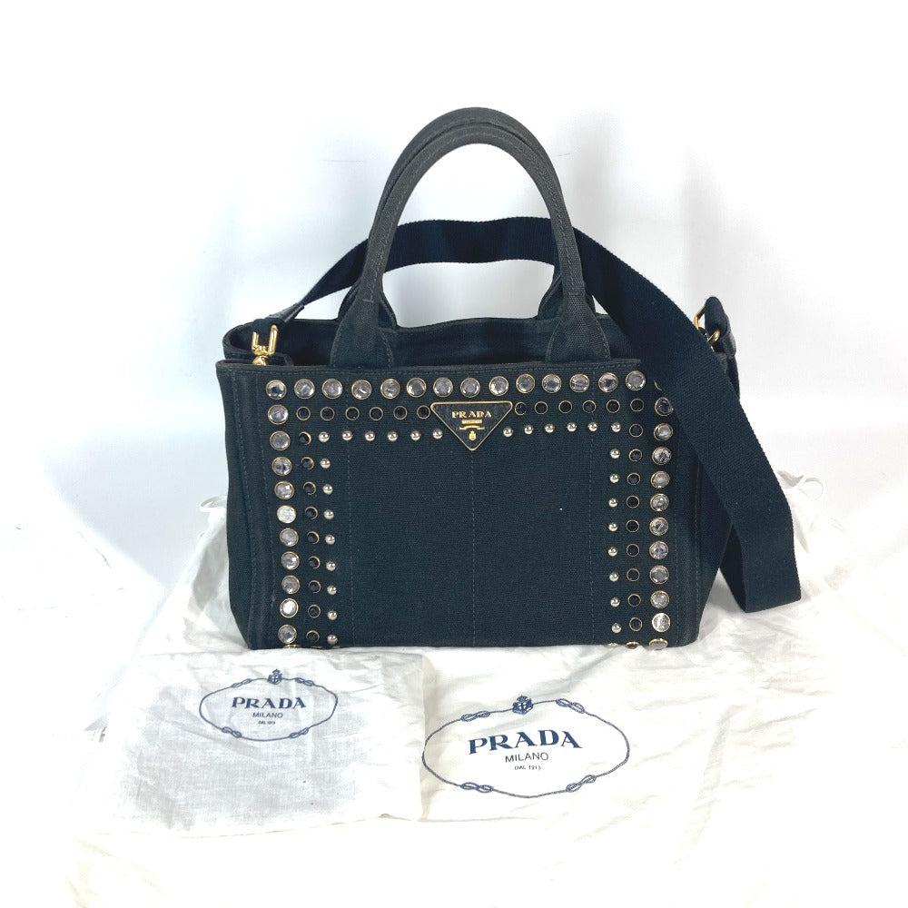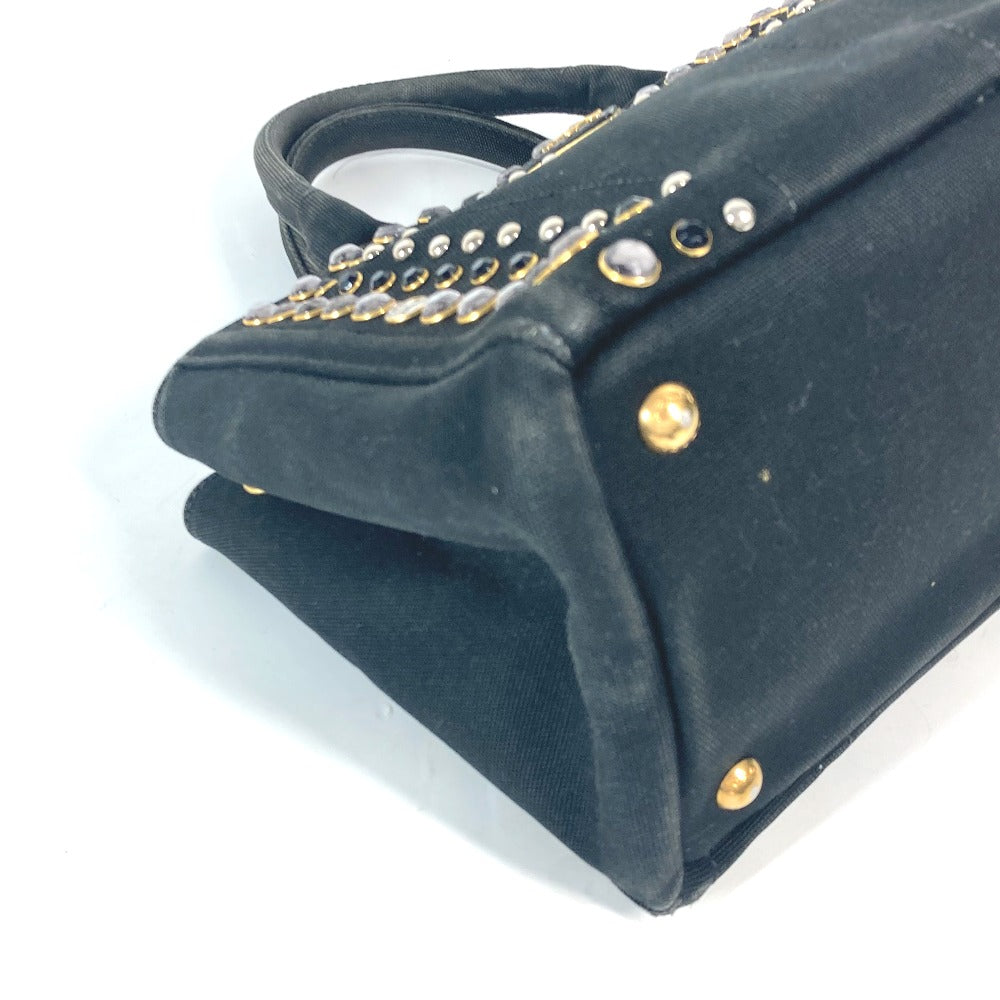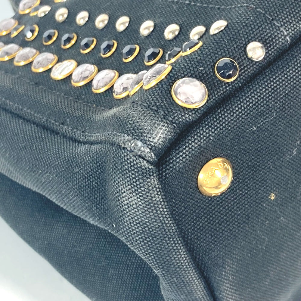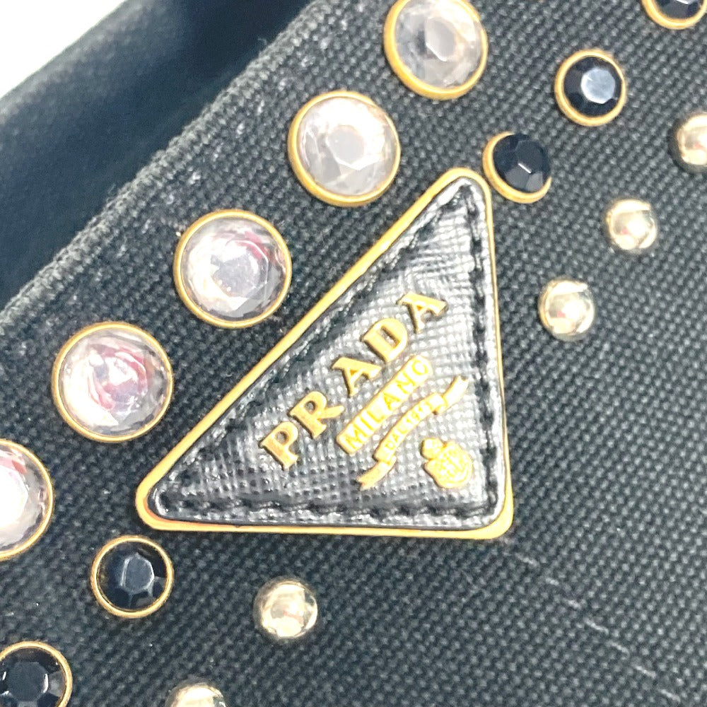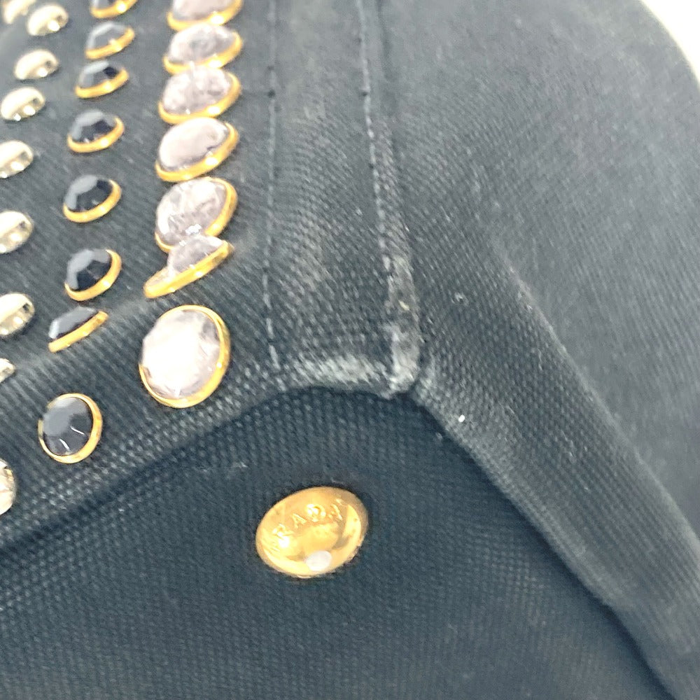 PRADA Tote Bag 1BG439 canvas black Crossbody Canapa S with Stones Women Used Authentic