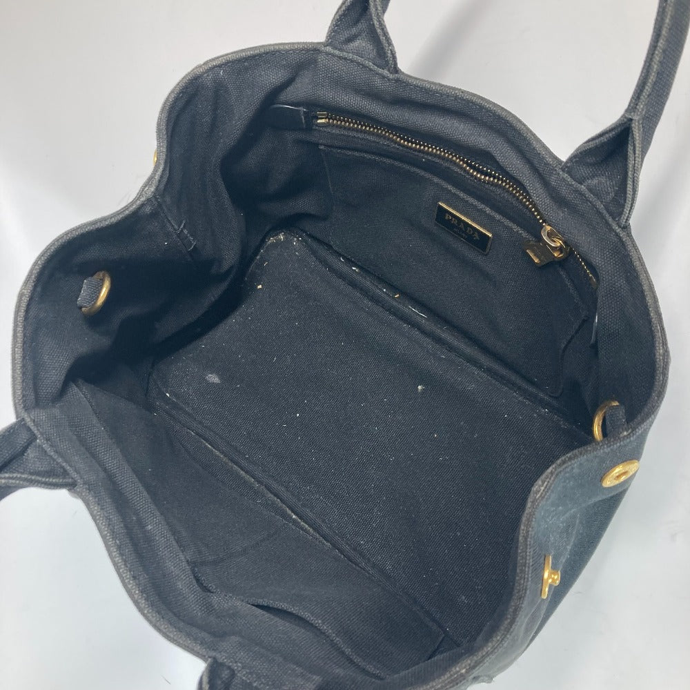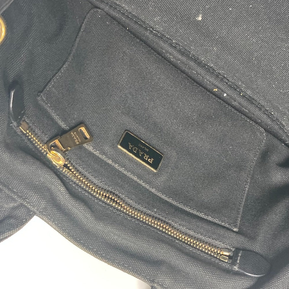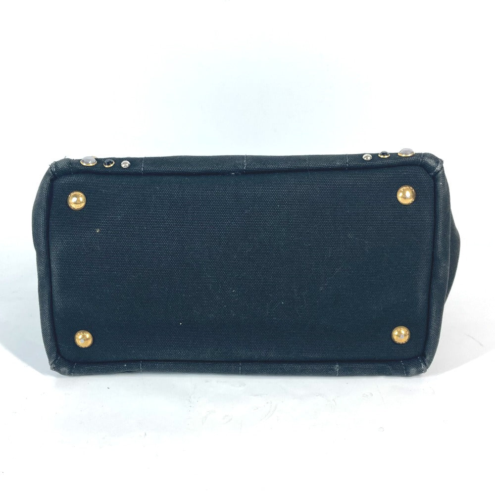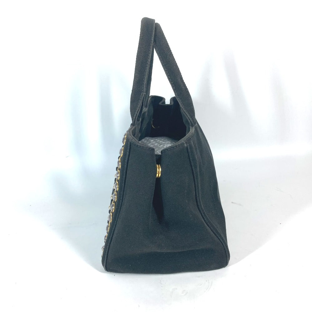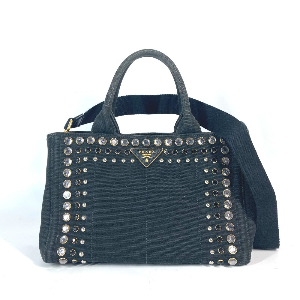 PRADA Tote Bag 1BG439 canvas black Crossbody Canapa S with Stones Women Used Authentic