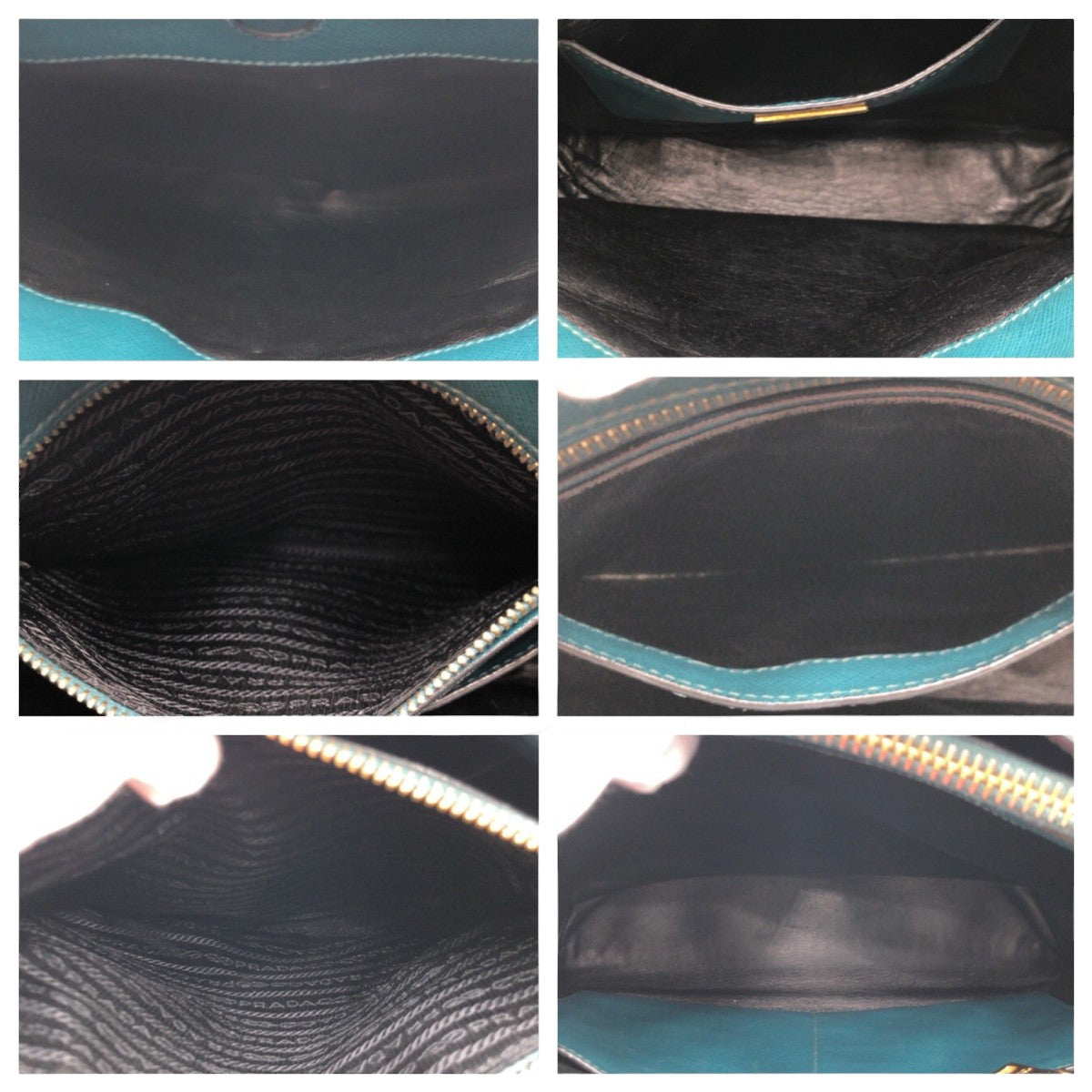 PRADA Tote Bag BN2606 leather Green GoldMetal Tote Bag Shoulder Bag Handbag Safiano Women Used Authentic