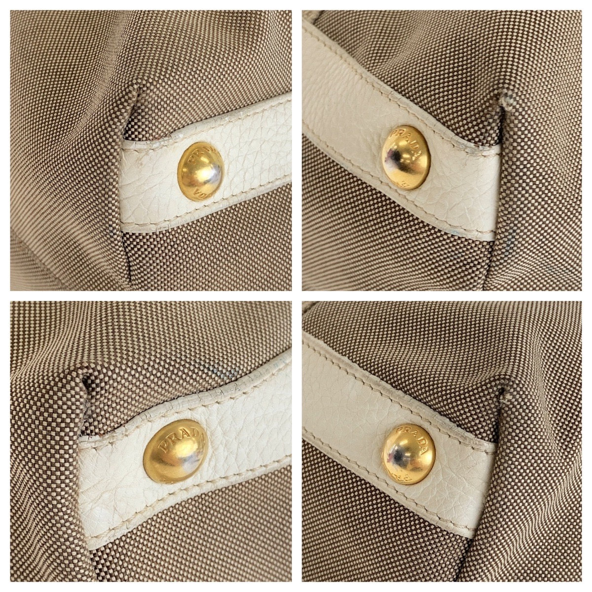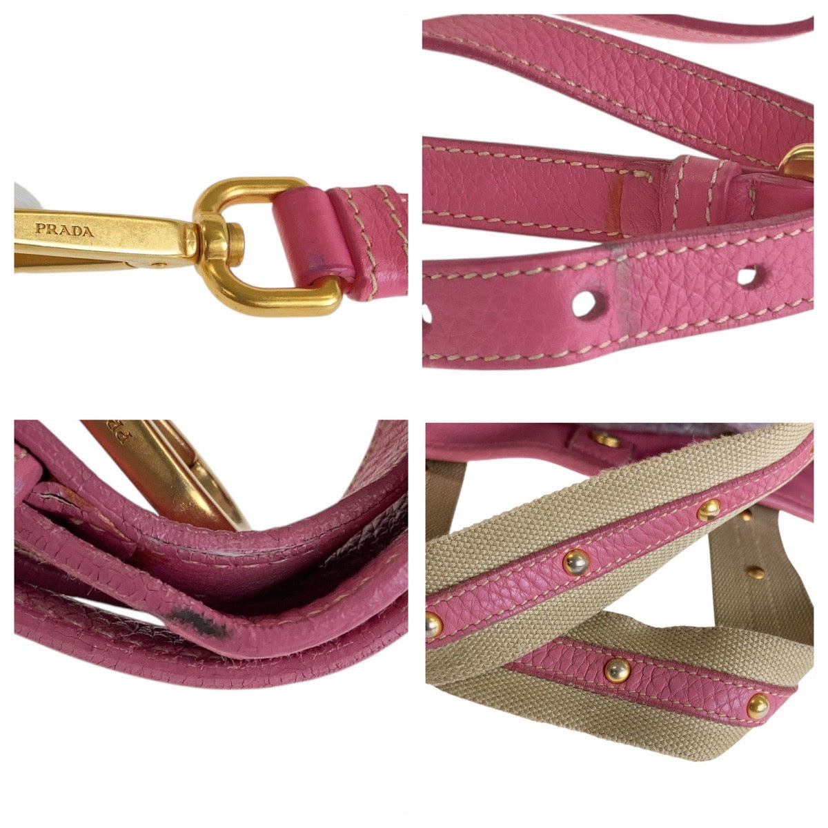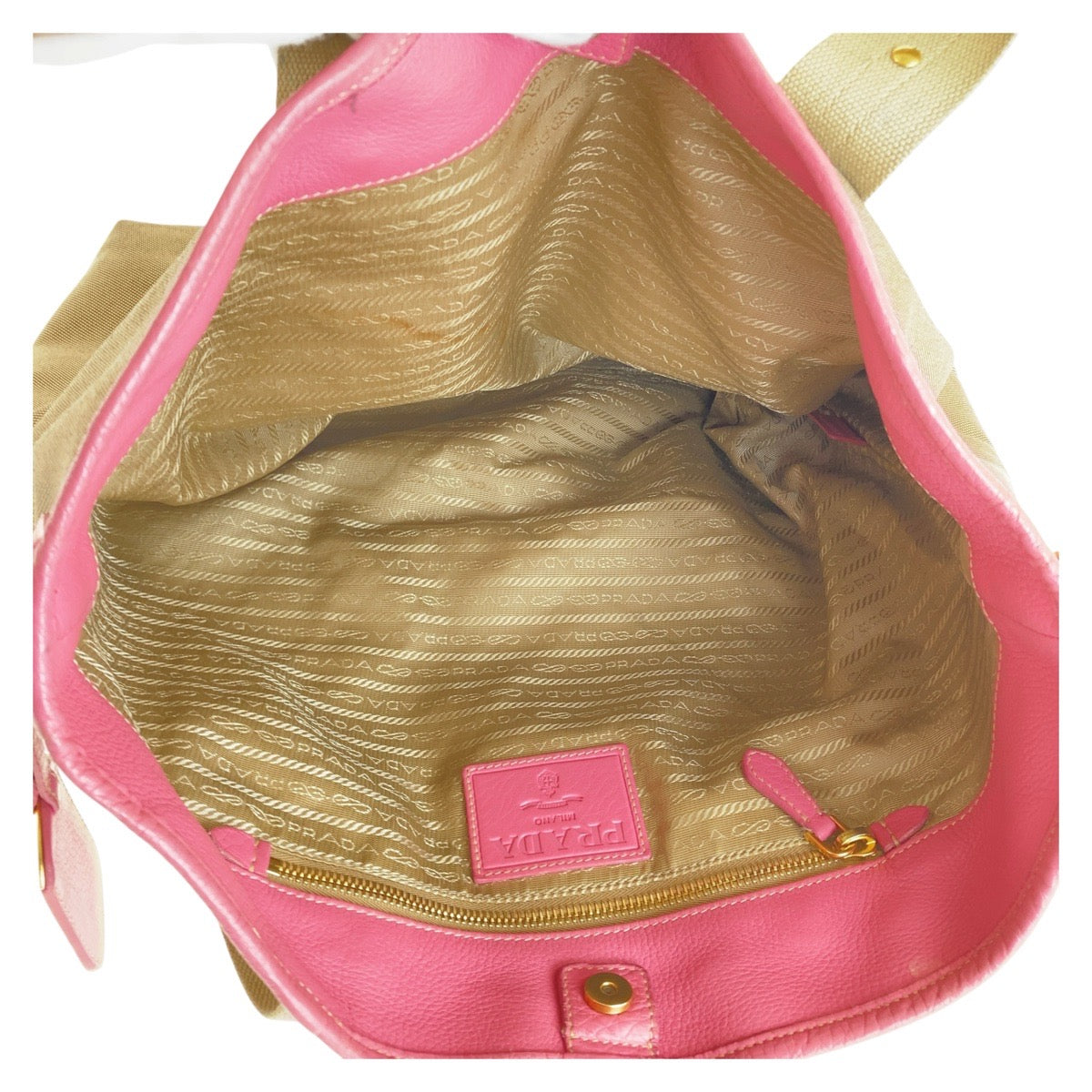 PRADA Tote Bag Canvas, Leather Beige Pink Gold Metal Tote Bag Shoulder Bag 2way Logo jacquard Women Used Authentic