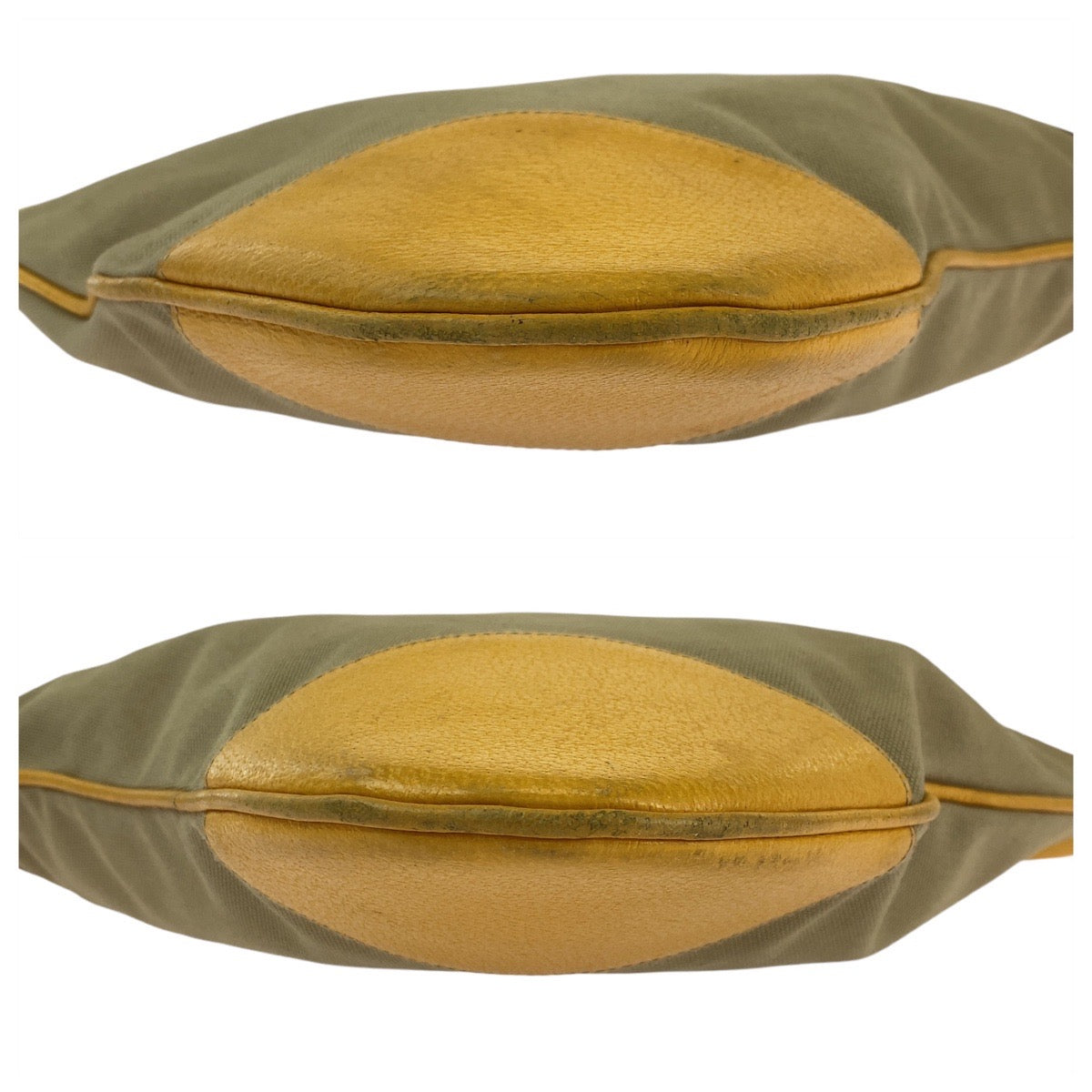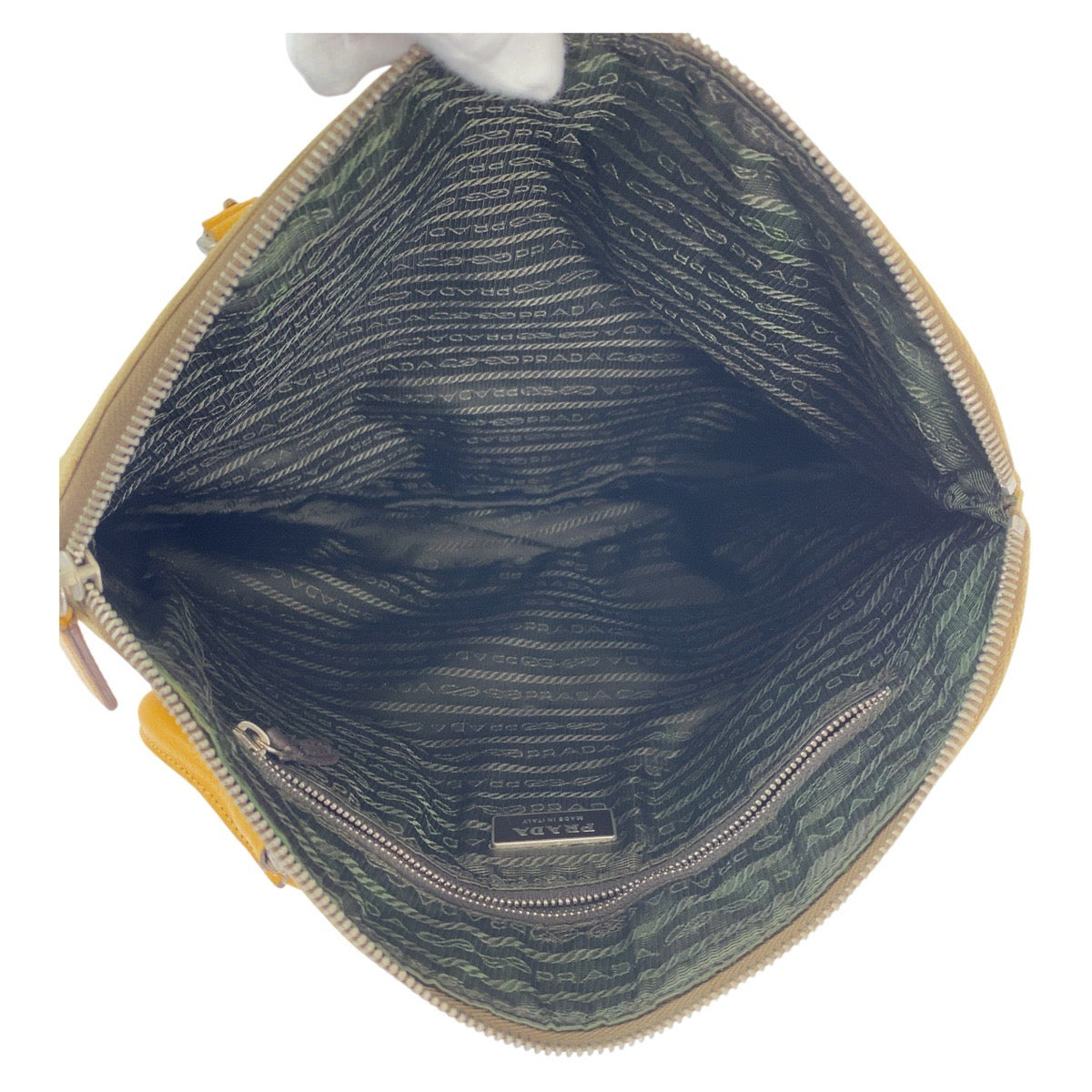 PRADA Tote Bag Canvas, Leather Beige Yellow SilverMetal Tote Bag Handbag Shoulder Bag Triangle With logo Women Used Authentic