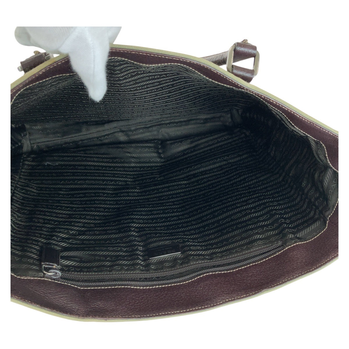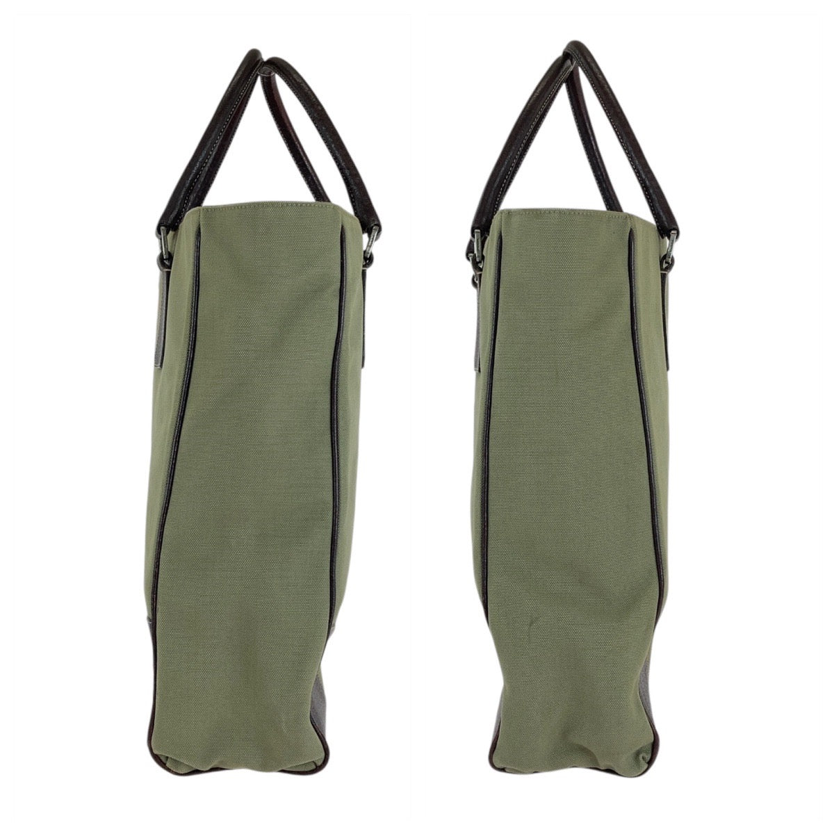 PRADA Tote Bag Canvas, Leather Khaki Brown SilverMetal Tote Bag Shoulder Bag Unisex Triangle With logo Women Used Authentic