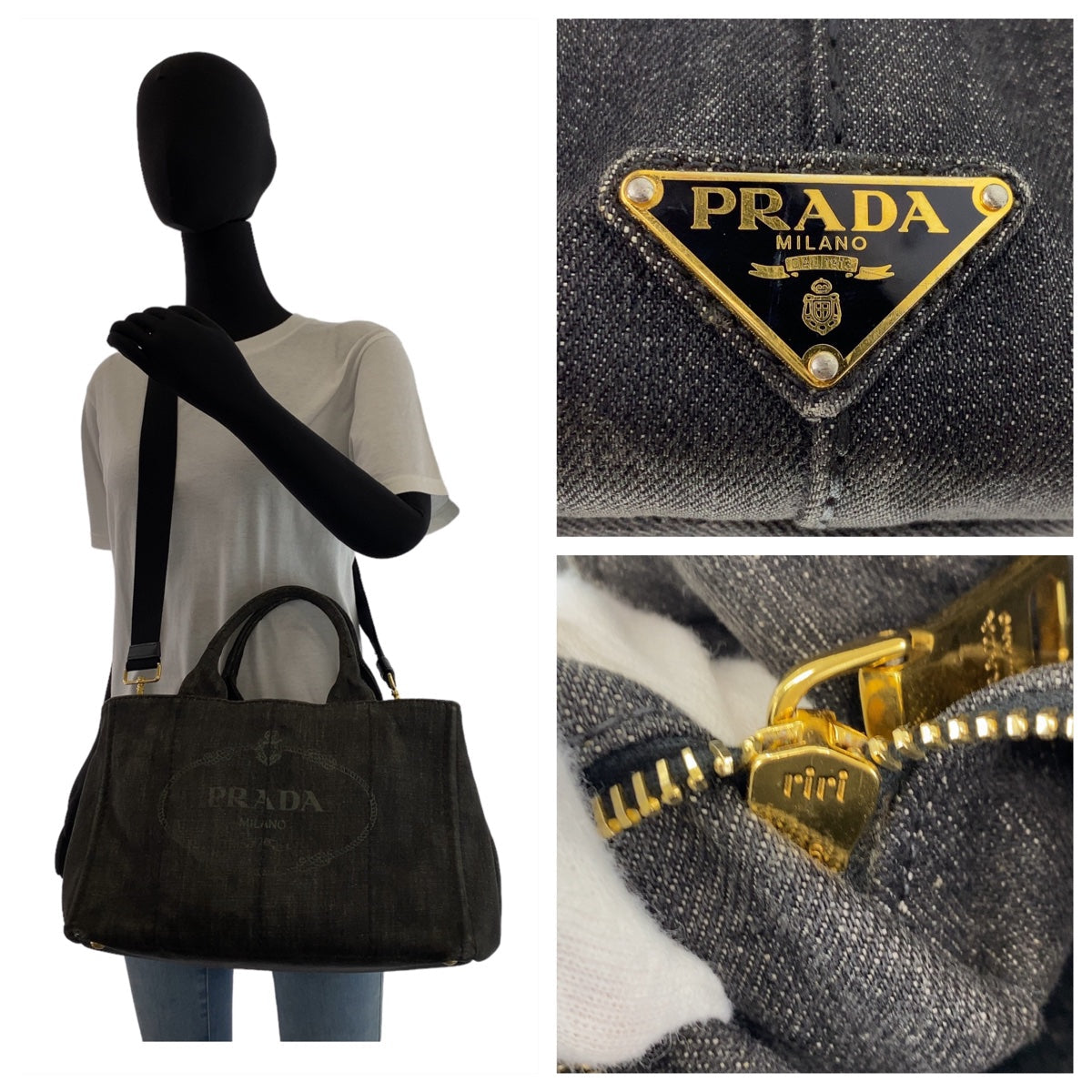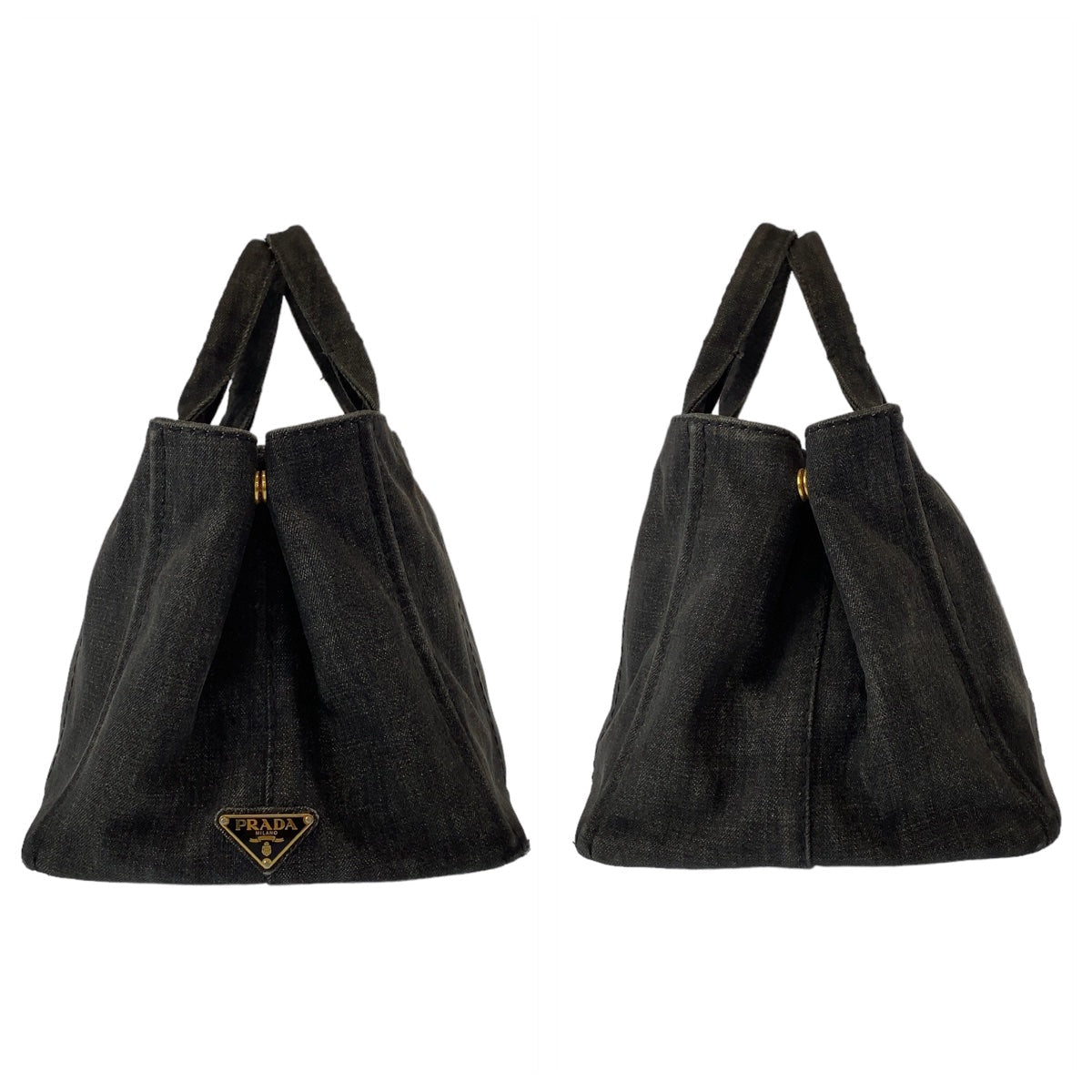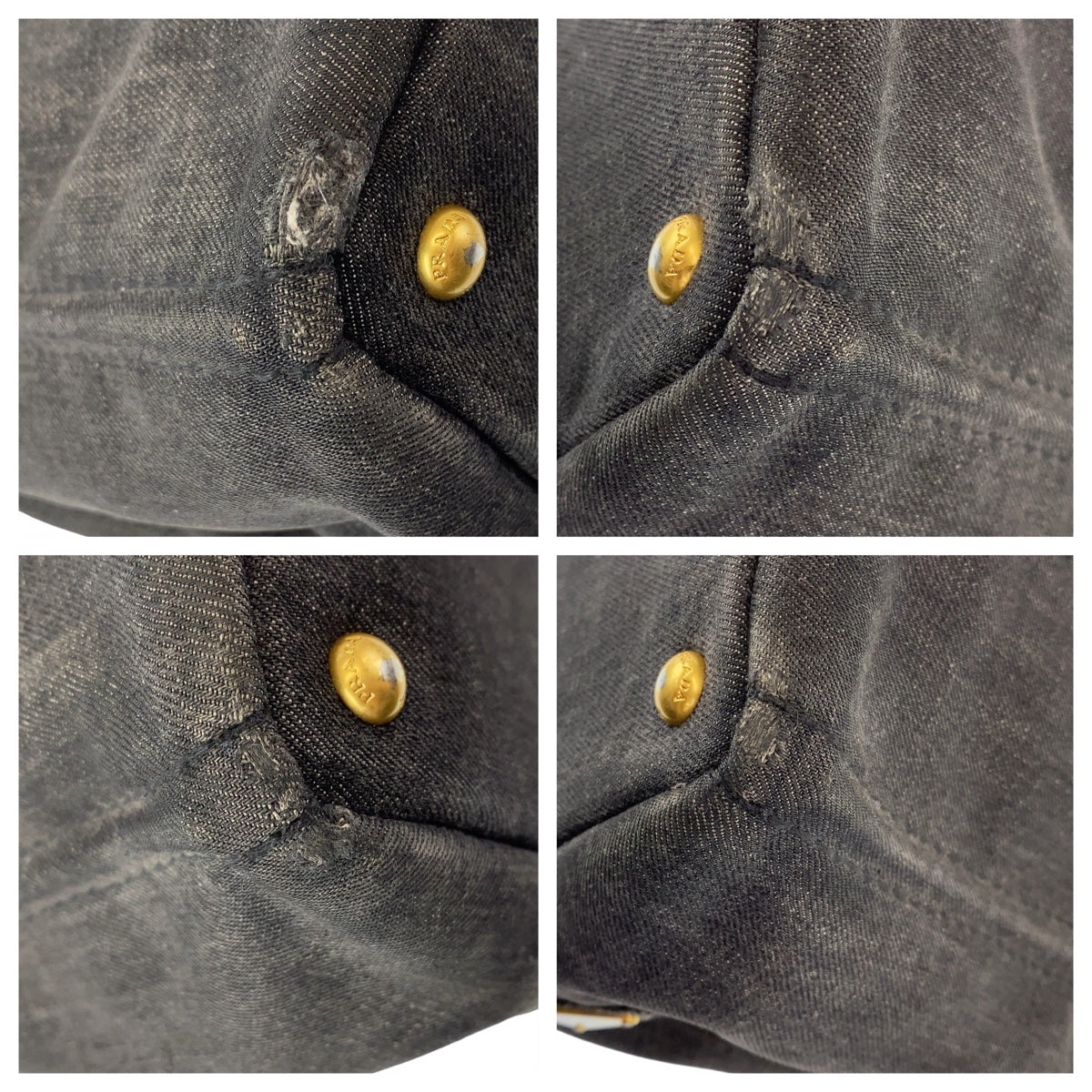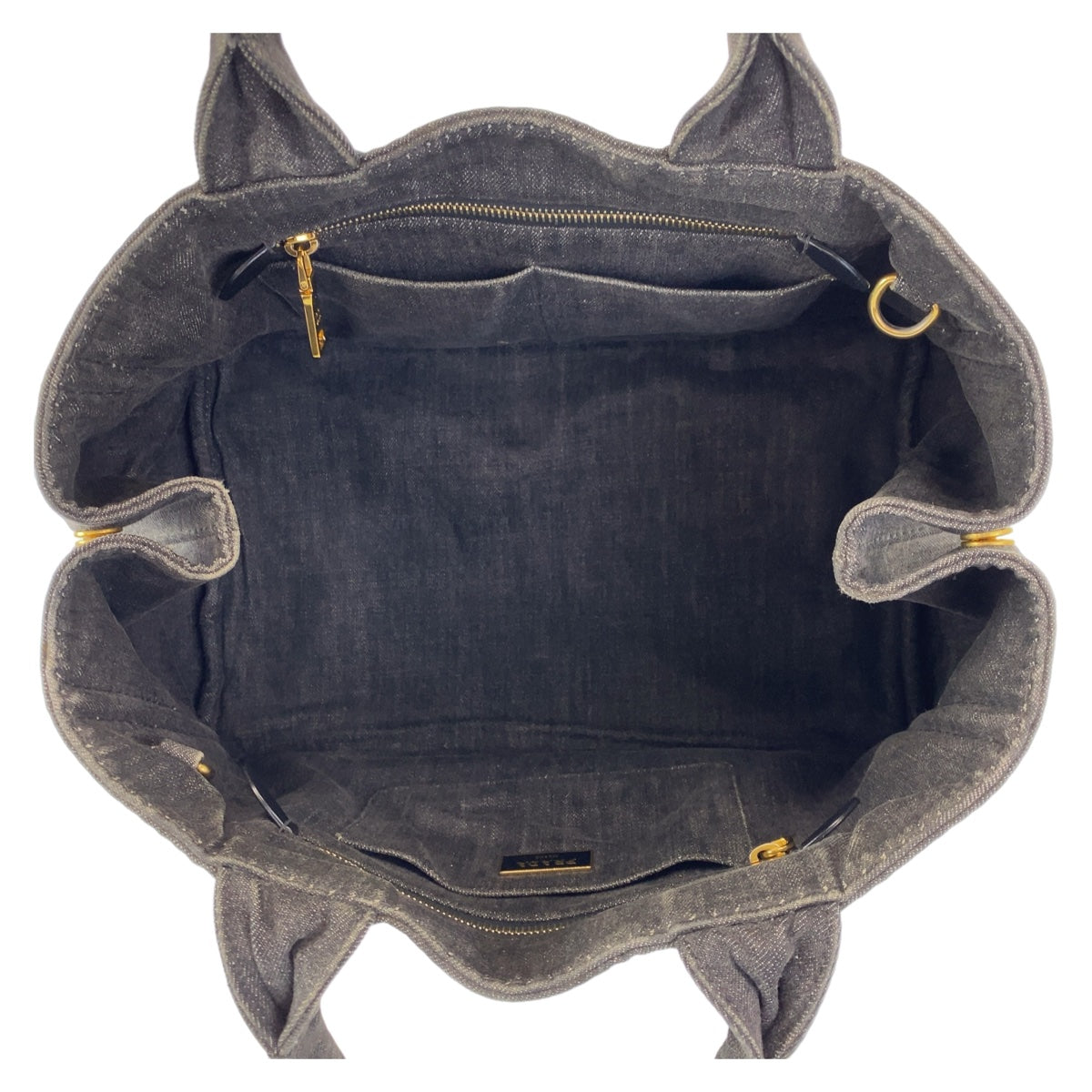 PRADA Tote Bag Cotton denim Grey GoldMetal 2way Tote Bag Crossbody Shoulder Bag Canapa Triangle With logo Women Used Authentic