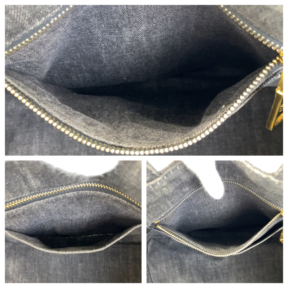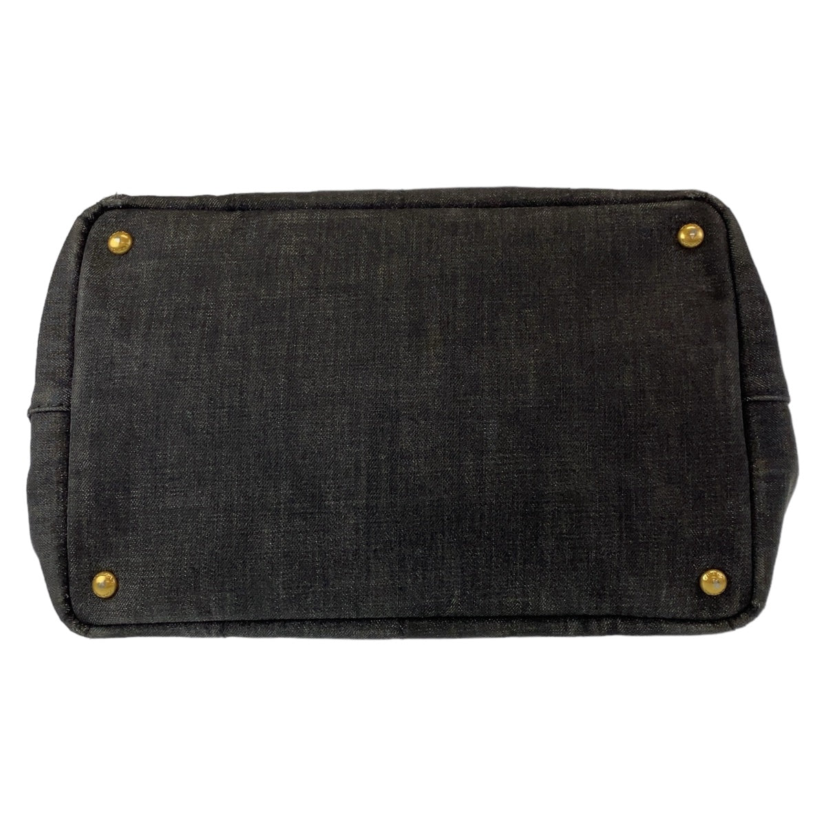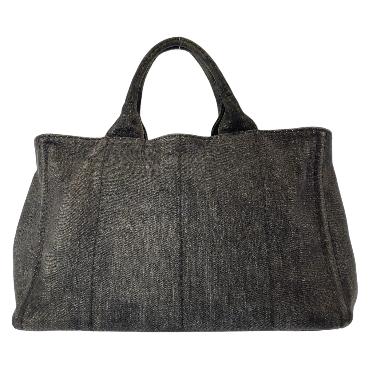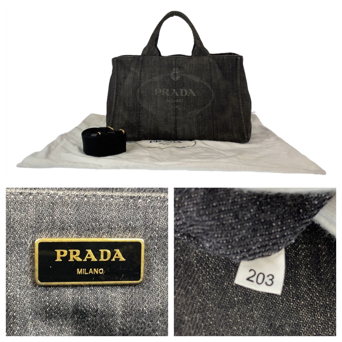 PRADA Tote Bag Cotton denim Grey GoldMetal 2way Tote Bag Crossbody Shoulder Bag Canapa Triangle With logo Women Used Authentic